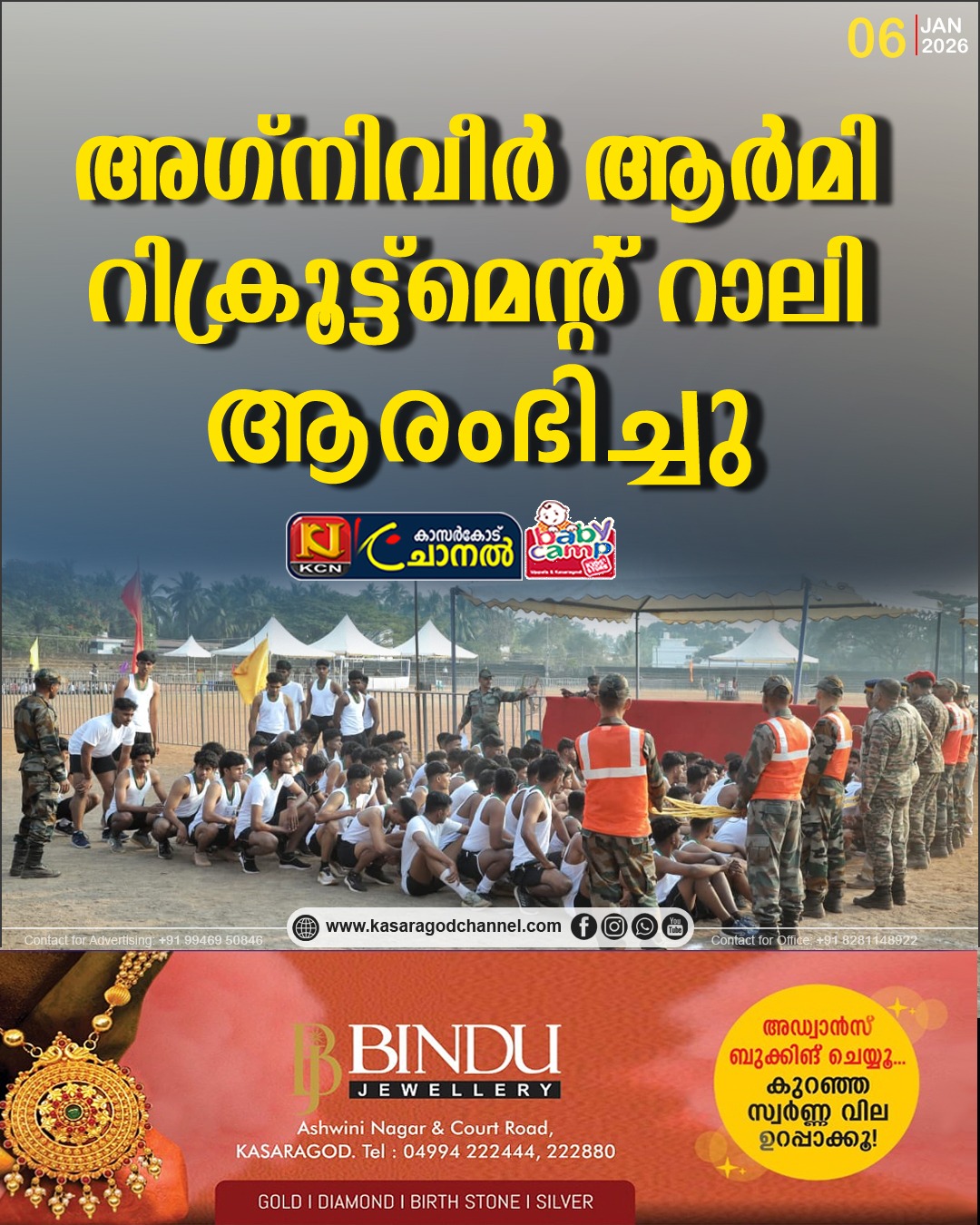 അഗ്നിവീര് ആര്മി റിക്രൂട്ട്മെന്റ് റാലിയ്ക്ക് വിദ്യാനഗര് കാസര്കോട് മുന്സിപ്പല് സ്റ്റേഡിയത്തില് ആരംഭം