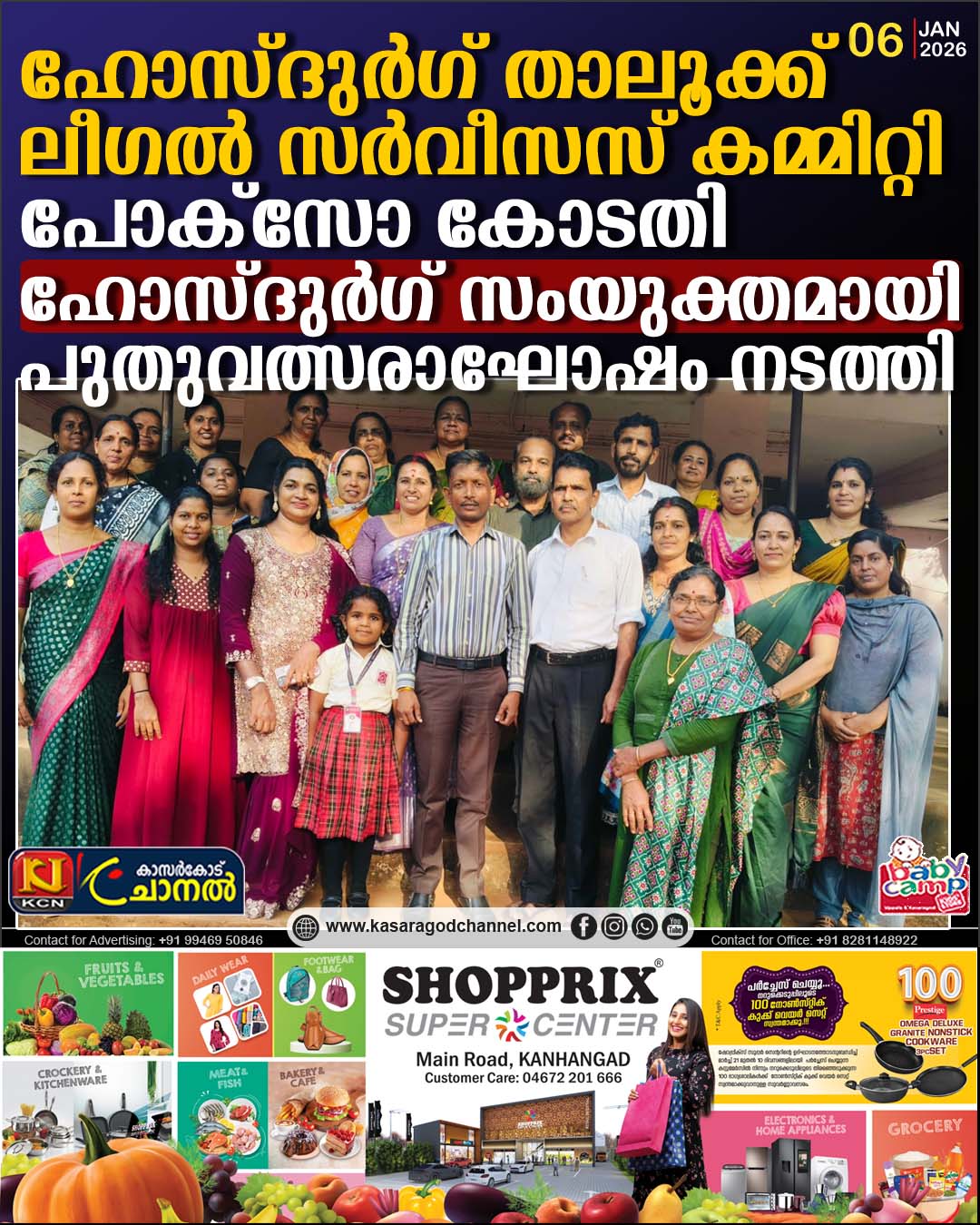 ഹോസ്ദുര്ഗ് താലൂക്ക് ലീഗല് സര്വീസസ് കമ്മിറ്റി, പോക്സോ കോടതി ഹോസ്ദുര്ഗ് സംയുക്തമായി പുതുവത്സരാഘോഷം നടത്തി.