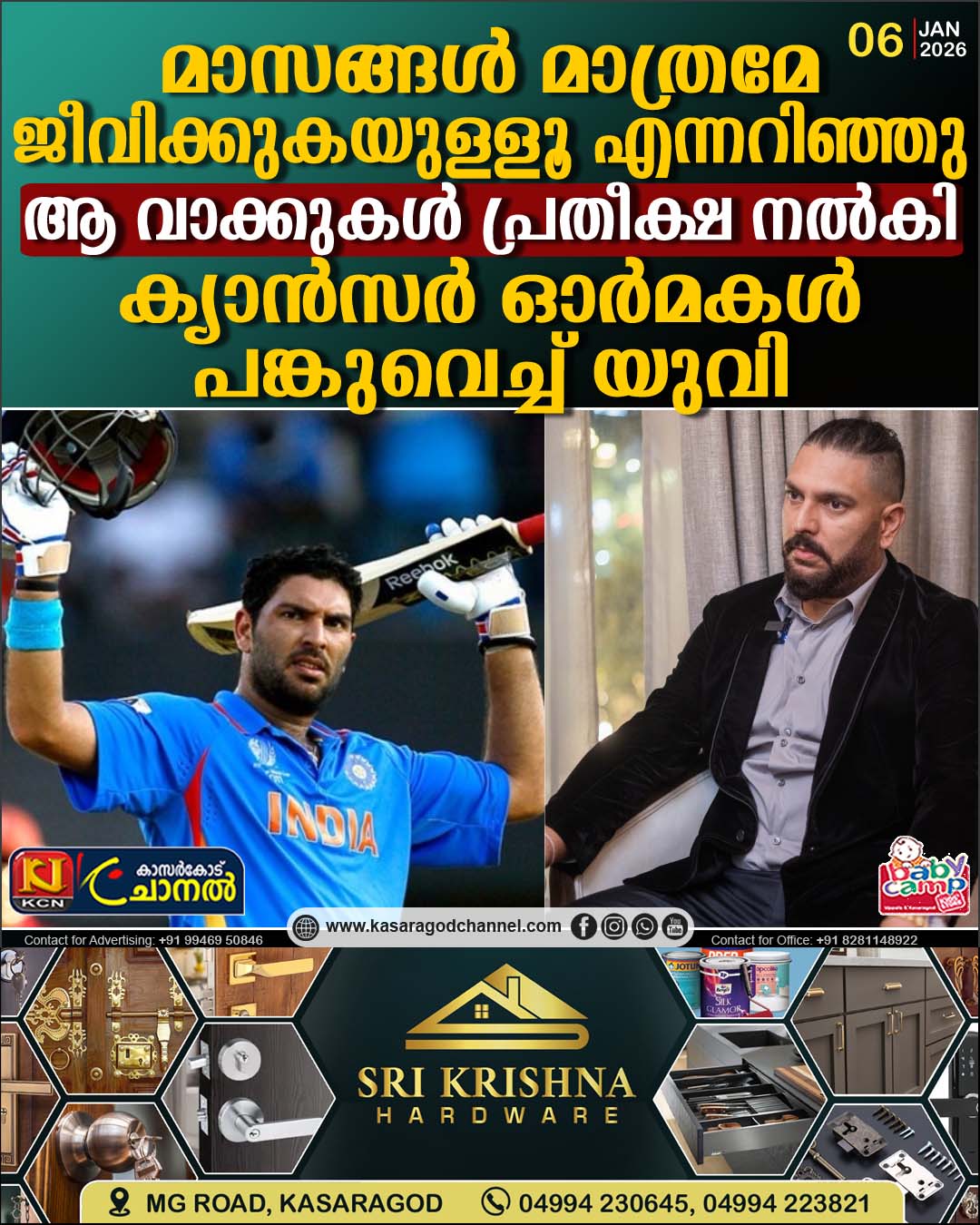 ശ്വാസകോശത്തിനും ഹൃദയത്തിനുമിടയില് പിടിപെട്ട ട്യൂമര് മൂലം തന്നോട് മാസങ്ങള് മാത്രമേ ജീവിക്കുകയുള്ളൂവെന്നാണ് പറഞ്ഞതെന്ന് യുവരാജ് സിങ് പറയുന്നു. ഇംഗ്ലണ്ട് മുന് താരം കെവിന് പിറ്റേഴ്സണിന്റെ യൂട്യൂബ് ചാനലില് സംസാരിക്കുകയായിരുന്നു യുവി. യുഎസിലെ ഡോക്റ്റര് ലോറന്സ് ഐന്ഹോണിന്റെ വാക്കുകള് ശക്തിനല്കിയെന്നും യുവി പറഞ്ഞു.