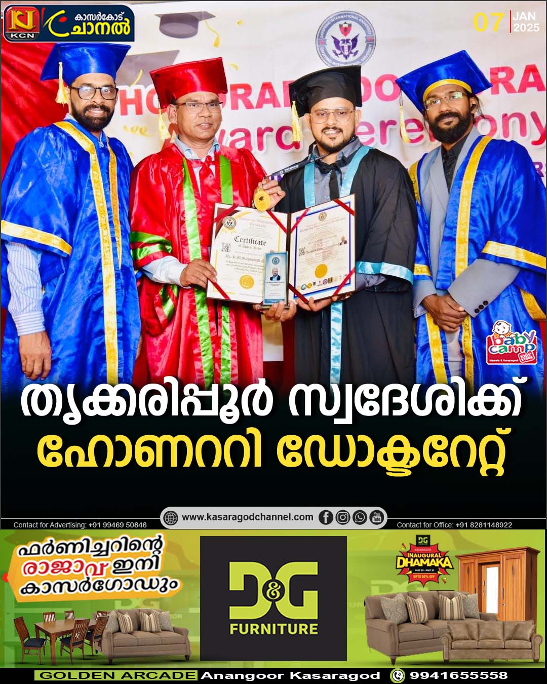 തൃക്കരിപ്പൂര് സ്വദേശിക്ക് ഹോണററി ഡോക്ടറേറ്റ്