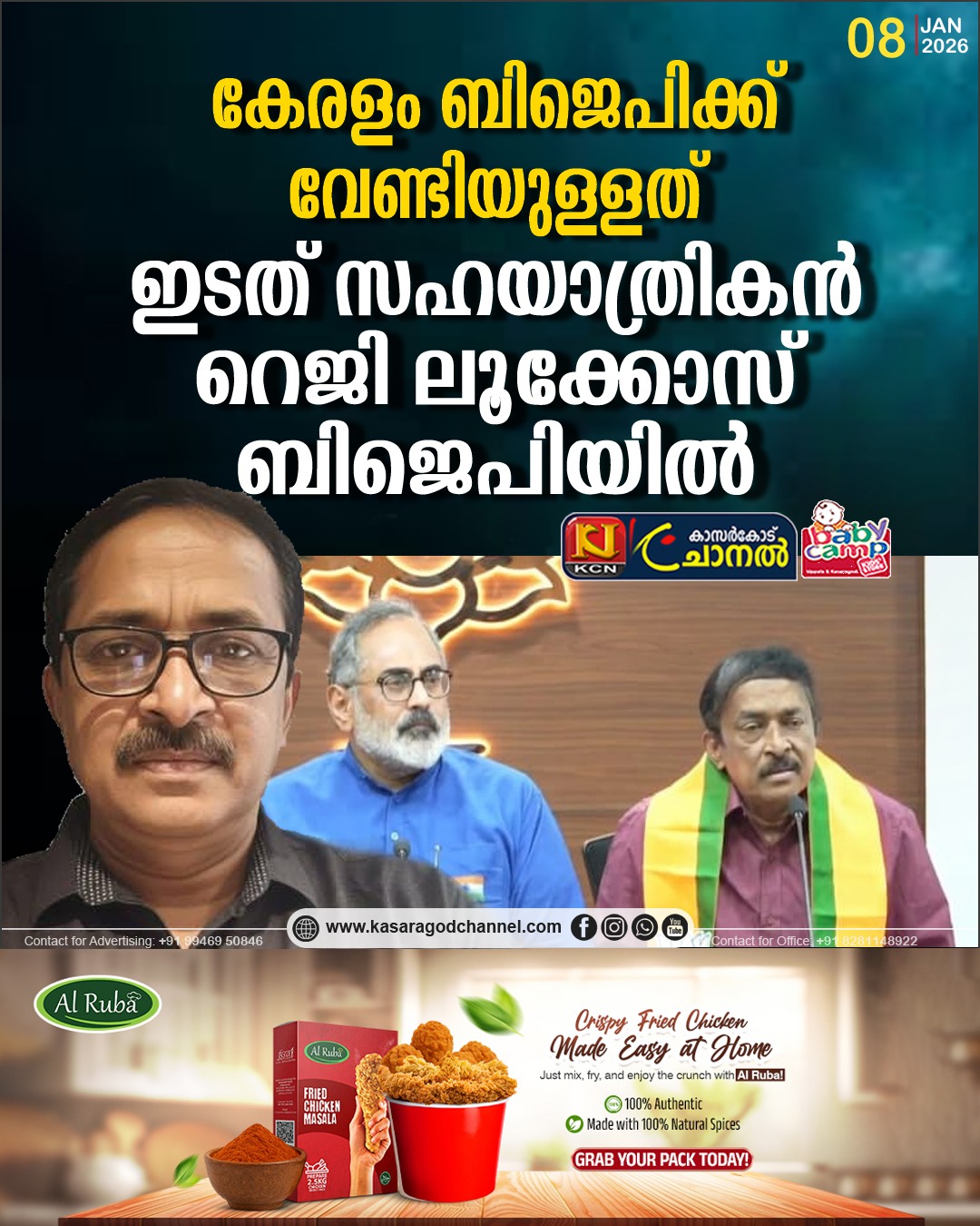 ഇടത് സഹയാത്രികന് റെജി ലൂക്കോസ് ബിജെപിയില് ചേര്ന്നു. ബിജെപി അധ്യക്ഷന് രാജീവ് ചന്ദ്രശേഖര് ഷാള് അണിയിച്ചു സ്വീകരിച്ചു. 35 വര്ഷമായി ഇടതുപക്ഷത്തോടൊപ്പം സഞ്ചരിച്ചു. പുതിയ തലമുറ നാടുവിടുന്നു. ദ്രവിച്ച ആശയം മാറണമെന്നും റെജി ലൂക്കോസ് പ്രതികരിച്ചു.