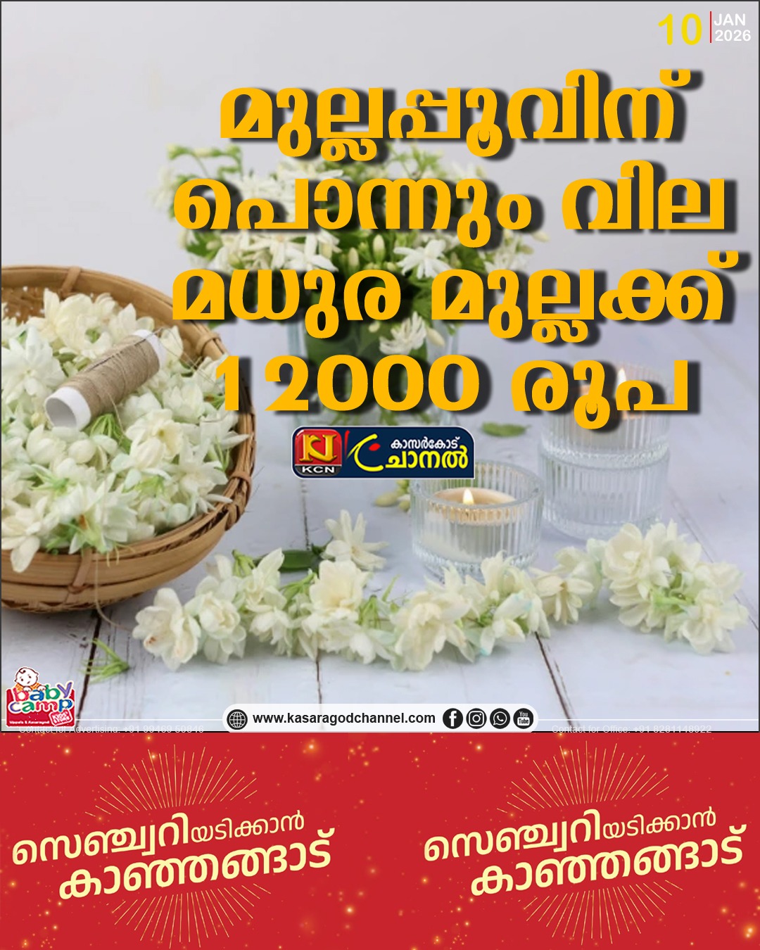 തമിഴ്നാട്ടില് മാത്രമല്ല കേരളത്തിലും മുല്ലപ്പൂവിന് പൊന്നുംവിലയാണ്. കൊച്ചിയില് ആറായിരത്തിനും ഏഴായിരത്തിനും ഇടയിലാണ് മുല്ലപ്പൂവിന്റെ വില. മാലകളുടെ വിലയും കുത്തനെ ഉയര്ന്നു. ഒരു ചെറിയ മുല്ലപ്പൂ മാലക്ക് വില 100 രൂപയ്ക്ക് മുകളിലാണ്. ശനി, ഞായര് ദിവസങ്ങളില് ചില്ലറ വില ഇരട്ടിയാകുന്ന സ്ഥിതിയുമുണ്ട്.