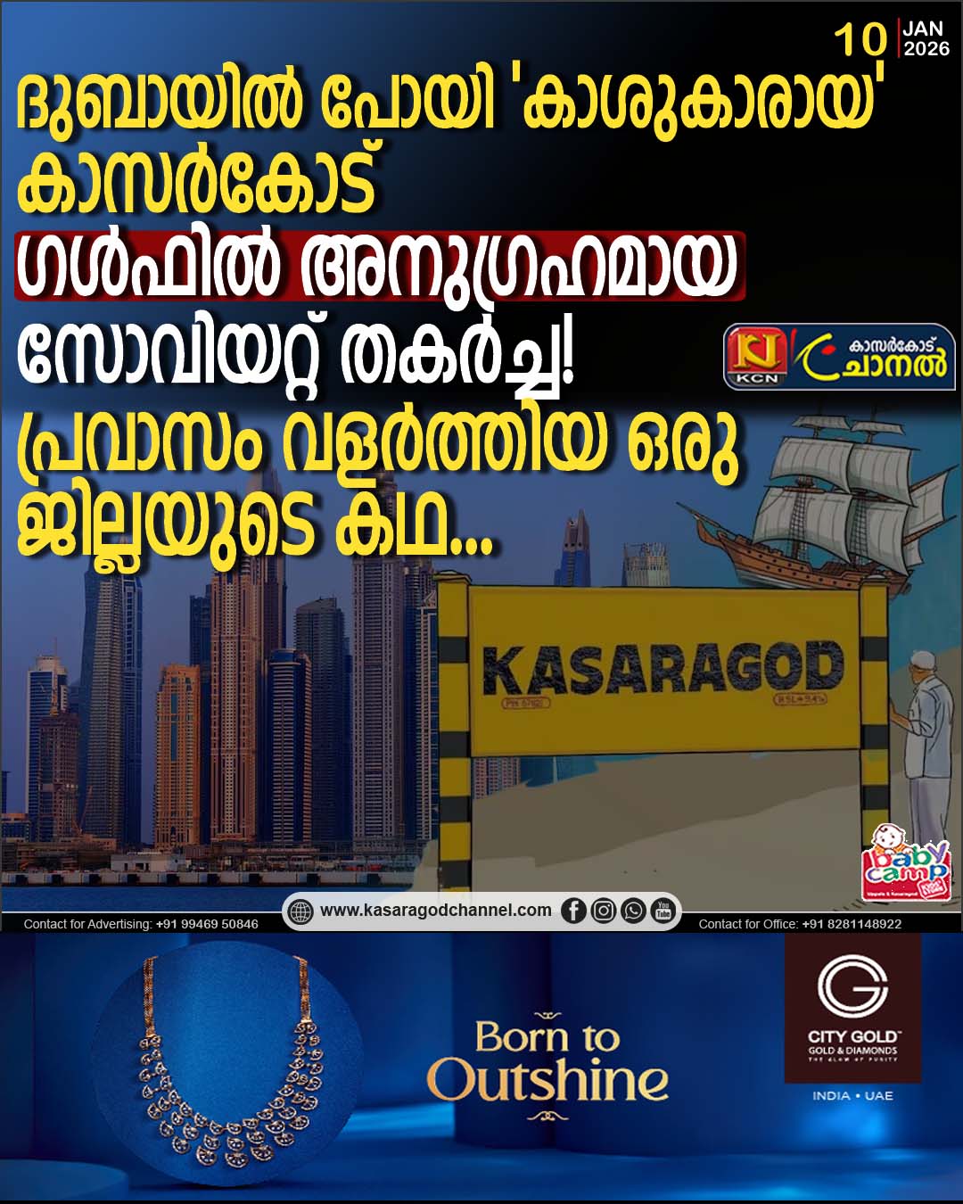 ജനുവരി 9ന് പ്രവാസി ഭാരതീയ ദിവസായി ആചരിക്കുമ്പോള് ആഘോഷിക്കപ്പെടുന്നത് പ്രവാസം വളര്ത്തിയ ഒരു നാടിന്റെ കഥ കൂടിയാണ്. നാടാകെ കാടു മൂടി, ജീവിതമാകെ ദാരിദ്ര്യത്തില് കൂടിക്കുഴഞ്ഞു കിടന്നിരുന്ന കാസര്കോട് ഇന്ന് വികസനത്തിന്റെ, സമ്പന്നരുടെ നാടാണ്. കാസര്കോടിനെ പ്രവാസലോകം വളര്ത്തിയതെങ്ങനെയാണ്? എന്താണ് ആ ജില്ലയുടെ പ്രവാസ ചരിത്രം? ബസില് ബോംബെയ്ക്കു പോയും അവിടെനിന്ന് കള്ളലോഞ്ച് കയറിയും ഉയരങ്ങളിലേക്കു കുതിച്ച കാസര്കോടന് ഗാഥയാണിത്. കാസര്കോടിനെ പ്രതാപങ്ങളിലേക്കുയര്ത്തിയ പ്രവാസവഴികളിലൂടെ ഒരു യാത്രയും.