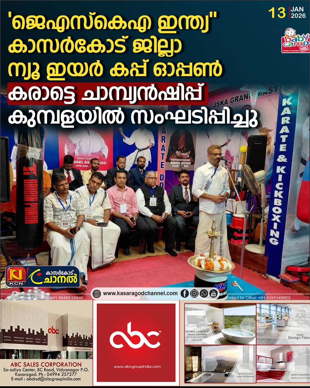 കാസറഗോഡ്: ജപ്പാന് ഷോട്ടോകാന് കരാട്ടെ അസോസിയേഷന് ഇന്ത്യയുടെ കാസറഗോഡ് ജില്ലാ കമ്മിറ്റി ഓര്ഗനൈസ് ചെയ്ത’ന്യൂ ഇയര് കപ്പ്”ഓപ്പണ് കരാട്ടെ ചാമ്പ്യന്ഷിപ് കുമ്പളയിലെ ജെ എസ്കെഎ കരാട്ടെ ഡോജോയില് വെച്ച് വിജയകരമായി നടത്തപ്പെട്ടു.