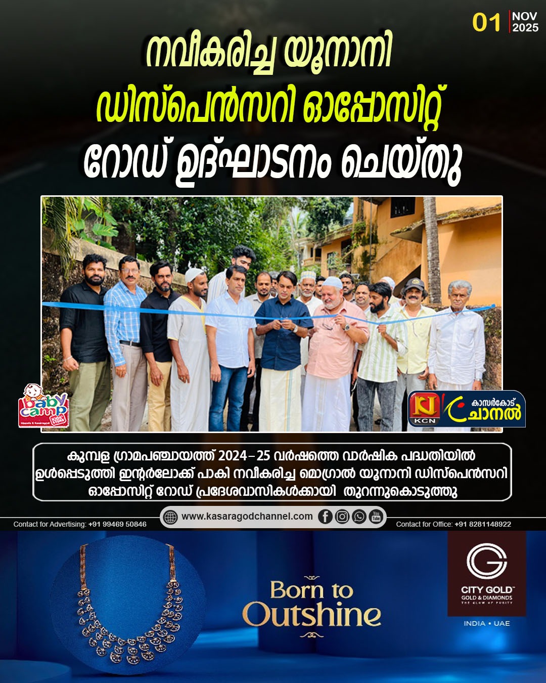 റോഡിന്റെ ഉദ്ഘാടനം വാര്ഡ് മെമ്പറും, കുമ്പള ഗ്രാമ പഞ്ചായത്ത് വൈസ് പ്രസിഡന്റുമായ നാസര് മൊഗ്രാല് നിര്വഹിച്ചു. ചടങ്ങില് യൂനാനി ഡിസ്പെന്സറി മെഡിക്കല് ഓഫീസര് ഡോ: ഷക്കീര് അലി, അബ്ദുള്ള-മൊയ്ദീന്,ഹമീദ് പെര്വാഡ്, അബ്ദുല് റഹ്മാന്, സെഡ് എ മൊഗ്രാല്,ജംഷീദ് മൊഗ്രാല്,മുഹമ്മദ് അബ്ക്കോ, ബദറുദ്ധീന് ദിനാര്, ഹമീദ് സലാമിയ, ഷമീര് കെ കെ,കെ എം അബ്ബാസ് കൊക്കോ,മസൂദ് കാടിയംകുളം, ഖാലിദ് കൊക്കോ തുടങ്ങിയവര് സംബന്ധിച്ചു.