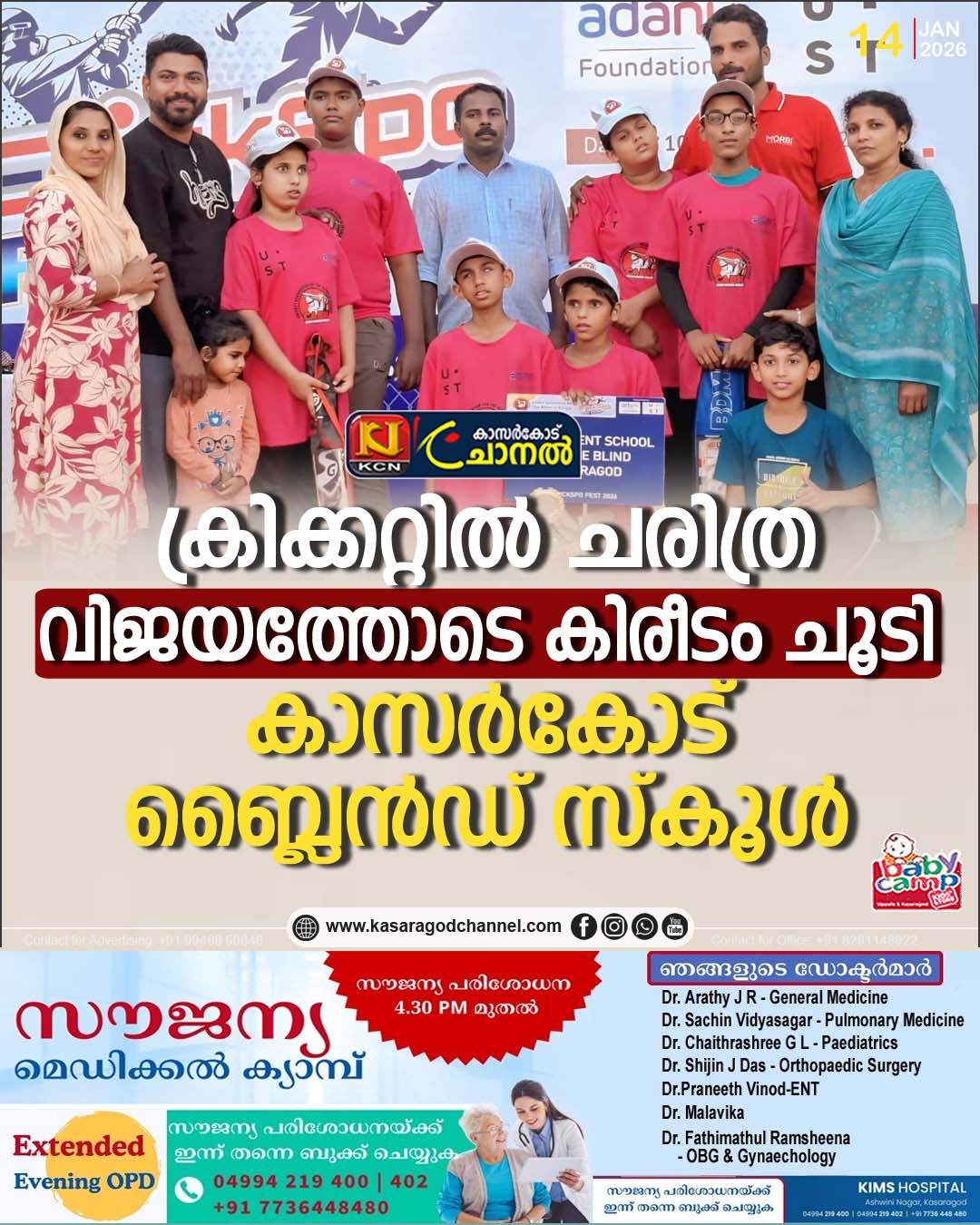 ക്രിക്കറ്റില് ചരിത്ര വിജയത്തോടെ കിരീടം ചൂടി കാസര്ഗോഡ് ബ്ലൈന്ഡ് സ്കൂള്