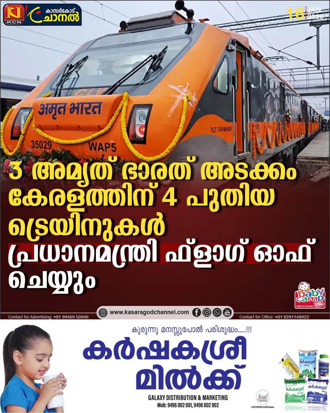 തിരുവനന്തപുരം-താംബരം, തിരുവനന്തപുരം-ഹൈദരാബാദ്, നാഗര്കോവില്-മംഗളൂരു എന്നീ അമൃത് ഭാരത് ട്രെയിനുകളാണ് കേരളത്തിന് അനുവദിച്ചിരിക്കുന്നത്. ഒപ്പം ഗുരുവായൂര്-തൃശൂര് പാസഞ്ചറുമുണ്ട്. നാഗര്കോവില്-ചര്ലാപ്പള്ളി, കോയമ്പത്തൂര്-ധന്ബാദ് അമൃത് ഭാരത് എന്നിവയാണ് തമിഴ്നാടിന് ലഭിക്കുക.