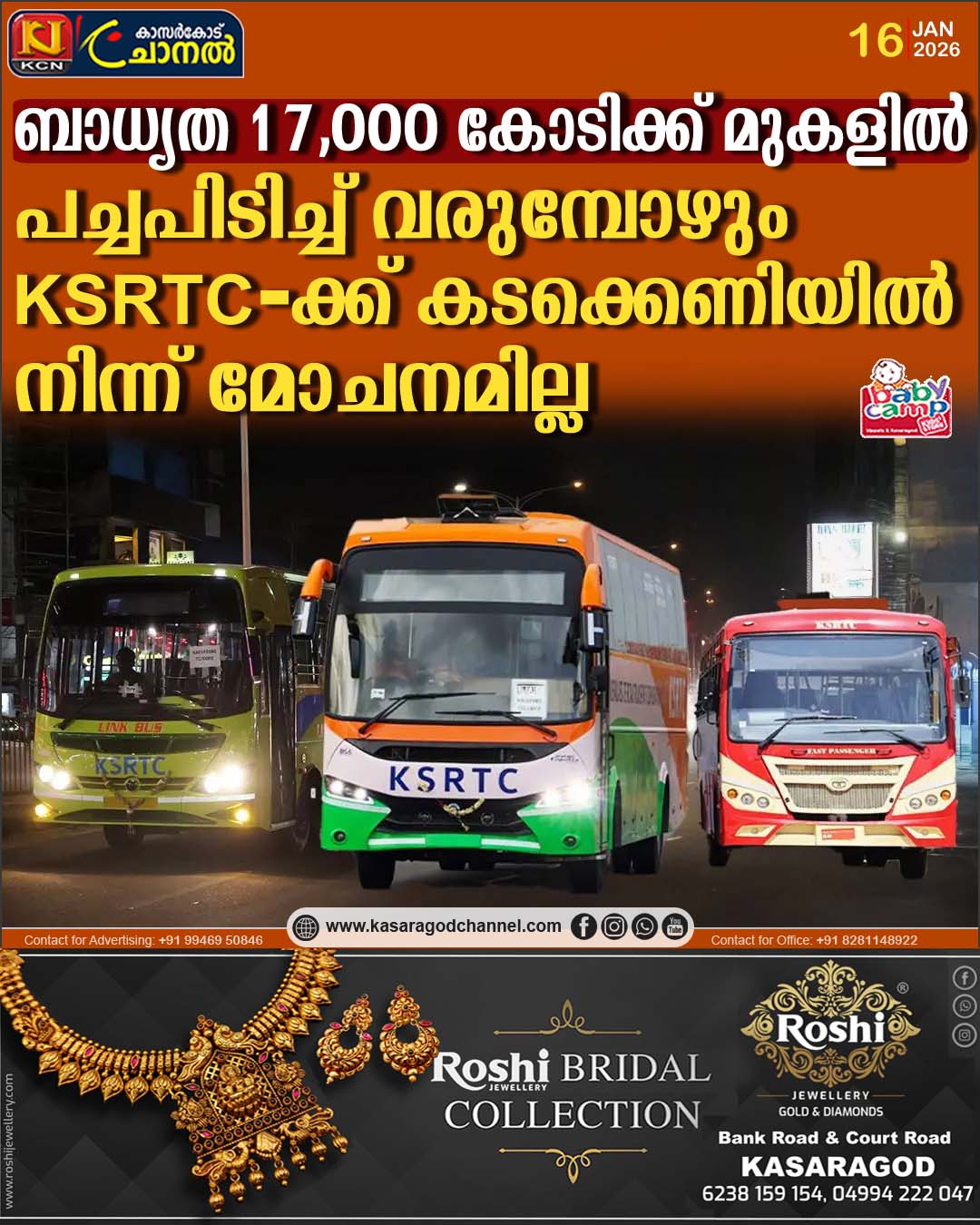 കൊല്ലം: കെഎസ്ആര്ടിസിയുടെ കടബാധ്യത സൂപ്പര് ഫാസ്റ്റ് വേഗത്തില് പെരുകുന്നു. 2025 ഒക്ടോബര് 31 വരെയുള്ള കണക്കുപ്രകാരം 17,235.47 കോടി രൂപയാണ് കെഎസ്ആര്ടിസിയുടെ ആകെ ബാധ്യത. ശമ്പളം, പെന്ഷന് എന്നിവ നല്കുന്നതിനടക്കം സര്ക്കാര് നല്കിയ സഹായവും ‘കട’മായാണ് ഉള്പ്പെടുത്തിയിരിക്കുന്നത്. ബാങ്കുകളുടെ കണ്സോര്ഷ്യത്തില്നിന്ന് കെഎസ്ആര്ടിസി എടുത്ത വായ്പയില് 2,692.33 കോടി രൂപ തിരിച്ചടയ്ക്കാന് ബാക്കിയുണ്ട്. 2039 മാര്ച്ച് 31 വരെയാണ് ഈ വായ്പയുടെ കാലാവധി.