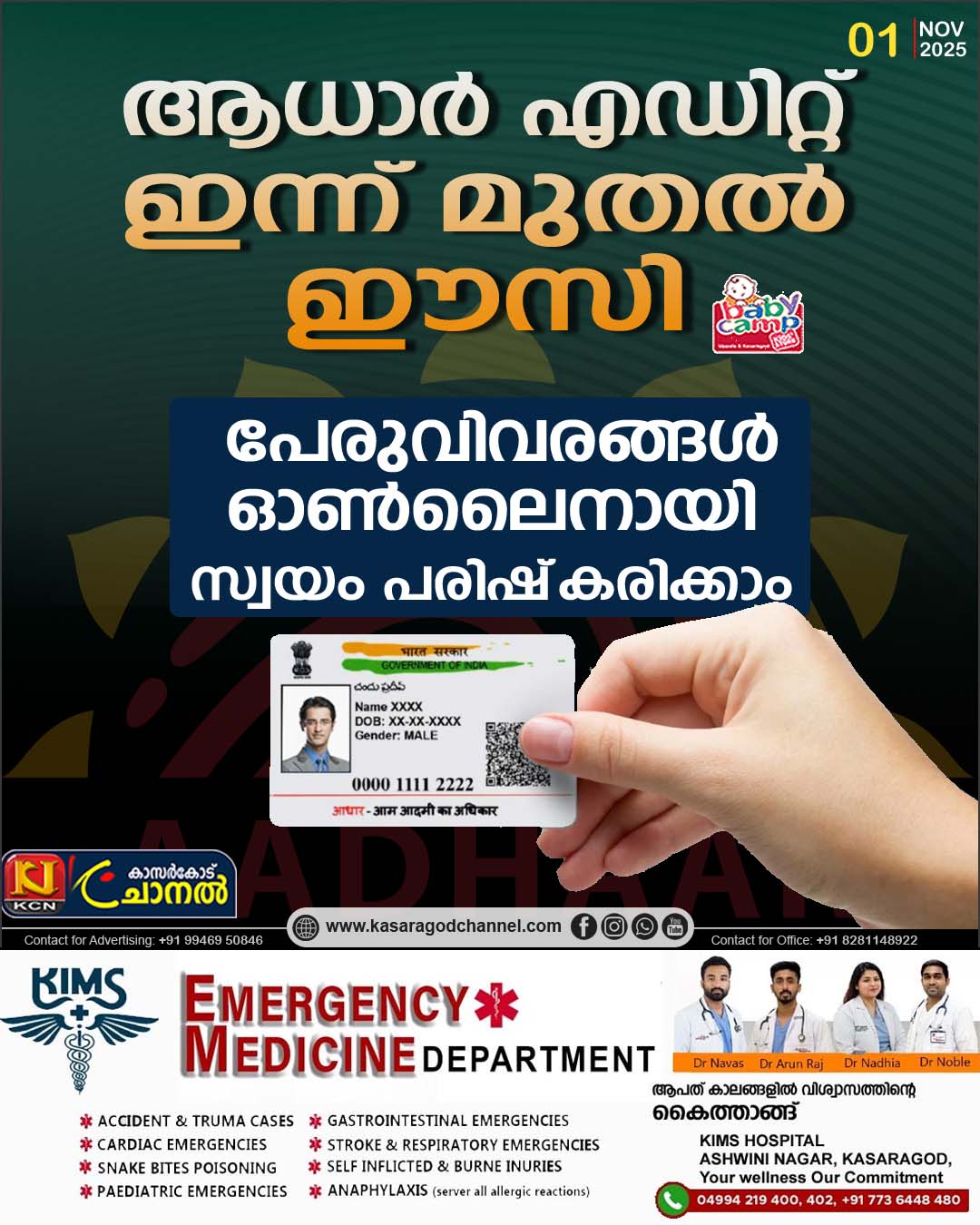 ആധാര് കാര്ഡുമായി ബന്ധപ്പെട്ട് വരുത്തിയ സുപ്രധാന മാറ്റങ്ങള് ഇന്നുമുതല് പ്രാബല്യത്തില്. ഇന്ന് മുതല് ആധാര് കാര്ഡ് ഹോള്ഡര്മാര്ക്ക് അവരുടെ പേര്, വിലാസം, ജനനതീയതി, മൊബൈല് നമ്പര് എന്നിവ ഓണ്ലൈനായി സ്വയം പരിഷ്കരിക്കാം. ആധാറില് മാറ്റങ്ങള് വരുത്താന് ഒരു നിശ്ചിത തുക അടയക്കേണ്ടി വരും. ഡെമോഗ്രഫിക്ക് വിവരങ്ങള്ക്ക് മാറ്റം വരുത്താന് 75 രൂപയും ബയോമെട്രിക്ക് അപ്ഡേറ്റിന് 125 രൂപയും നല്കണം. കുട്ടികള്ക്ക് ബയോമെട്രിക്ക് അപ്ഡേറ്റുകള് സൗജന്യമാണ്.