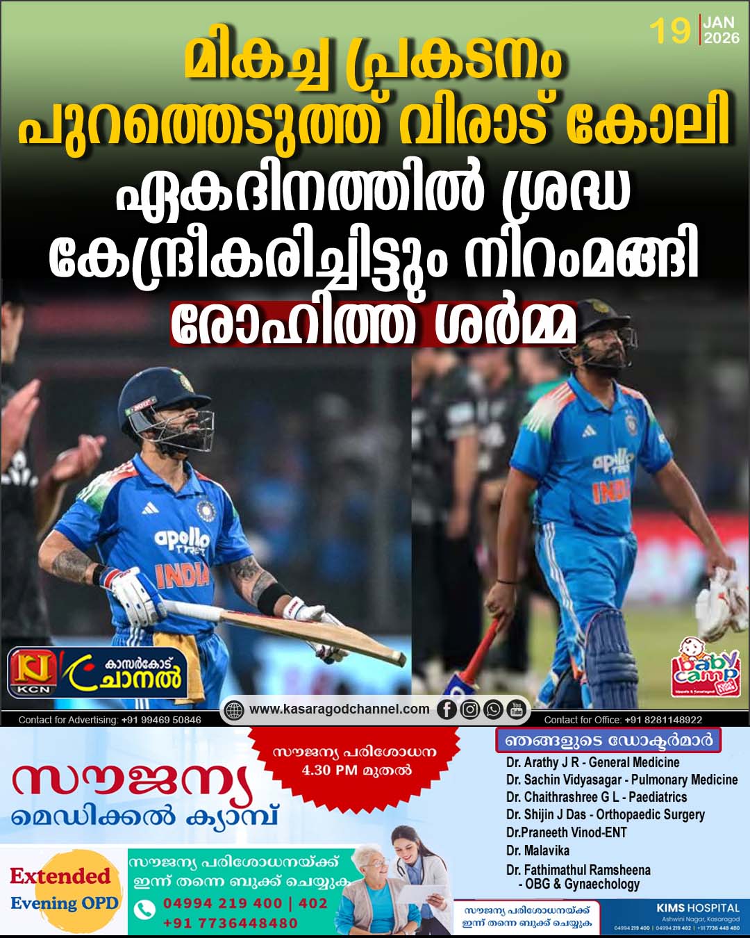 മികച്ച പ്രകടനം പുറത്തെടുത്ത് വിരാട് കോലി; ഏകദിനത്തില് ശ്രദ്ധ കേന്ദ്രീകരിച്ചിട്ടും നിറംമങ്ങി രോഹിത്ത് ശര്മ്മ