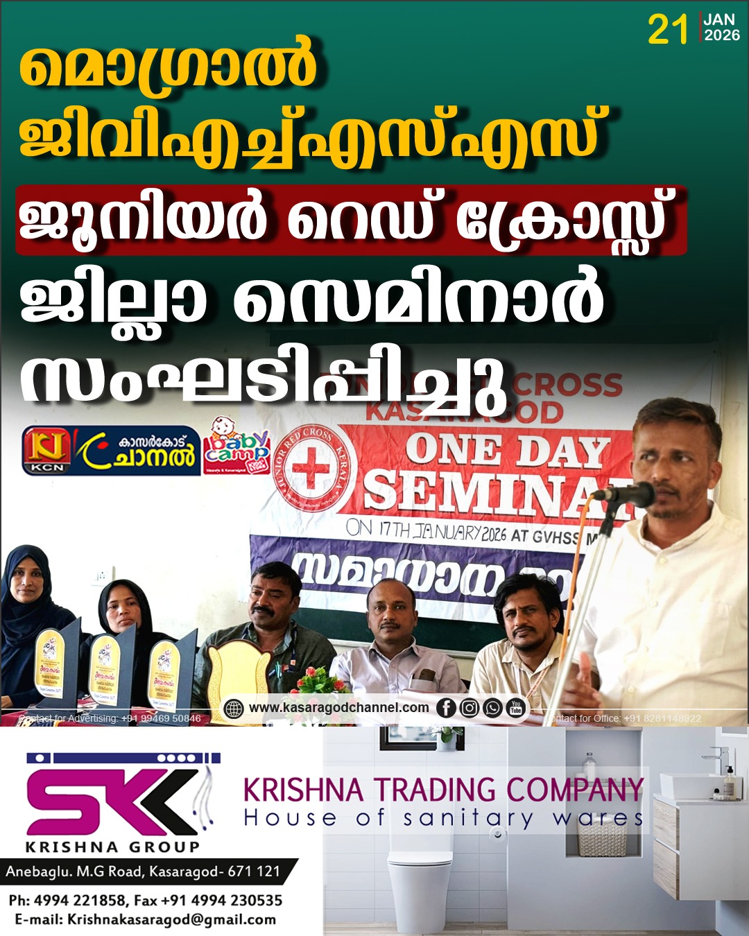 മൊഗ്രാല് ജിവിഎച്ച്എസ്എസ്: ജൂനിയര് റെഡ് ക്രോസ്സ് ജില്ലാ സെമിനാര് സംഘടിപ്പിച്ചു.
