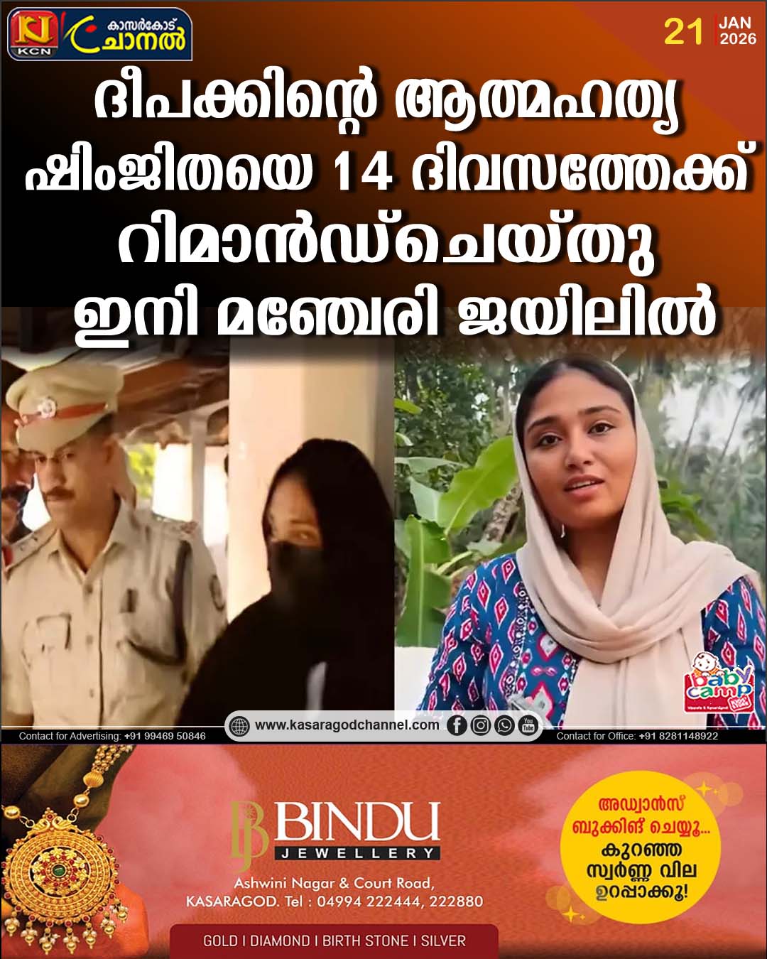 ദീപക്കിന്റെ ആത്മഹത്യ: ഷിംജിതയെ 14 ദിവസത്തേക്ക് റിമാന്ഡ്ചെയ്തു, ഇനി മഞ്ചേരി ജയിലില്