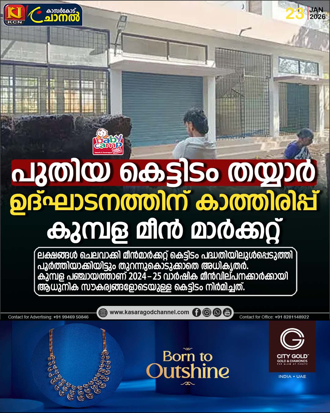 പദ്ധതിയിലുള്പ്പെടുത്തി പൂര്ത്തിയാക്കിയിട്ടും തുറന്നുകൊടുക്കാതെ അധികൃതര്. കുമ്പള പഞ്ചായത്താണ് 2024-25 വാര്ഷിക മീന്വില്പനക്കാര്ക്കായി ആധുനിക സൗകര്യങ്ങളോടെയുള്ള കെട്ടിടം നിര്മിച്ചത്.