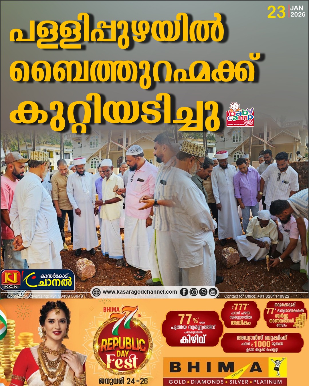 പള്ളിക്കര : യു.എ.ഇ കെ.എം.സി.സി പള്ളിപ്പുഴ ശാഖ കമ്മിറ്റിയുടെ നേതൃത്വത്തില് പള്ളിപ്പുഴയില് നിര്മിച്ചു നല്കുന്ന ബൈത്തുറഹ്മ പദ്ധതിയുടെ കുറ്റിയടിക്കല് കര്മ്മം പള്ളിപ്പുഴ ചീഫ് ഇമാം സഈദ് സഅദി കാവുംപടിയുടെ സാന്നിധ്യത്തില് എന്.പി മുഹമ്മദ് വളാഞ്ചേരി നിര്വഹിച്ചു. പള്ളിപ്പുഴ കെ.എം.സി.സി ഭാരവാഹികളായ ഷെരീഫ് പി.കെ (ട്രഷറര്), അസ്ലം അബ്ദുല് ഖാദര് (വൈസ് പ്രസിഡന്റ്), അന്സാരി മഹ്മൂദ് (മീഡിയ സെക്രട്ടറി), പള്ളിപ്പുഴയിലെ മുസ്ലീം ലീഗിന്റെയും മറ്റു പോഷക സംഘടനകളുടെയും നേതാക്കള്, പ്രവര്ത്തകര്, പള്ളിപ്പുഴ ജമാഅത്ത് കമ്മിറ്റി ഭാരവാഹികള്, മത-സാമൂഹിക-സാംസ്കാരിക രംഗത്തെ പ്രമുഖവര് തുടങ്ങിയവര് ചടങ്ങില് പങ്കെടുത്തു.