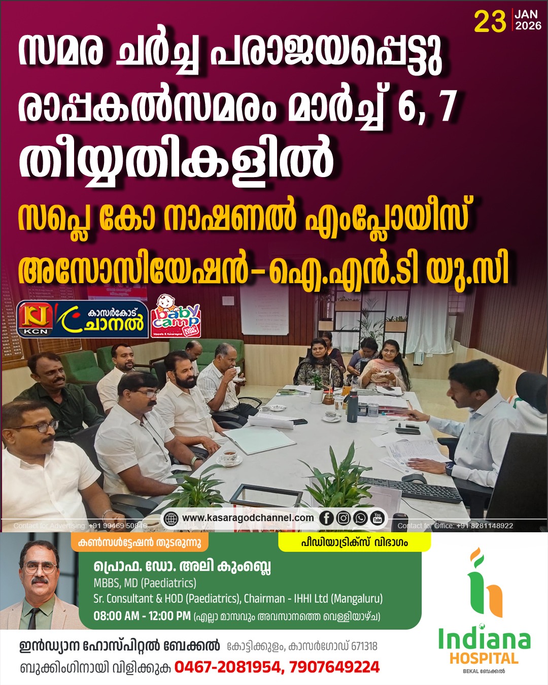 സപ്ലൈകോയെ സംരക്ഷിക്കുക ,വിലക്കയറ്റം തടയുക, 2019 മുതല് 2023 വരെയുള്ള 4 വര്ഷത്തെ ശമ്പള കുടിശ്ശിഖ അനുവദിക്കുക, താല്ക്കാലിക പാക്കിംഗ് ദിവസ വേതന തൊഴിലാളികളുടെ വേതനം വര്ദ്ദിപ്പിക്കുക ആരോഗ്യ ഇന്ഷുറന്സ് നടപ്പിലാക്കുക,2014 ന് ശേഷം സര്വ്വീസില് വന്ന ജീവനക്കാര്ക്ക് പ്രത്യേക പെന്ഷന് പാക്കേജ് അനുവദിക്കുക തുടങ്ങിയ ആവശ്യങ്ങള് നടപ്പിലാക്കണമെന്നാവശ്യപ്പെട്ട് ഡിസംബര് 23 ന് നടത്താനിരുന്ന സമരം ജനുവരി 22നുള്ളില് തീര്പ്പ് കല്പിക്കുമെന്ന് നേരത്തെ നടത്തിയ ചര്ച്ചയില് ഉറപ്പ് നല്കിയതിനെ തുടര്ന്ന് സമരം മാറ്റിവെച്ചിരുന്നു ഇതിന്റെ തുടര്ച്ചയായി സപ്ലൈകോനാ ഷണല് എംപ്ലോയീസ് അസോസിയേഷന് ഐ.എന്.ടിയുസിയുമായി ഇന്ന് സപ്ലൈകോ മാനേജിംഗ് ഡയരക്ടര് ചര്ച്ചനടത്തിയെങ്കിലും യാതൊന്നും നടപ്പില്വരുത്തുവാന് കഴിഞ്ഞില്ല