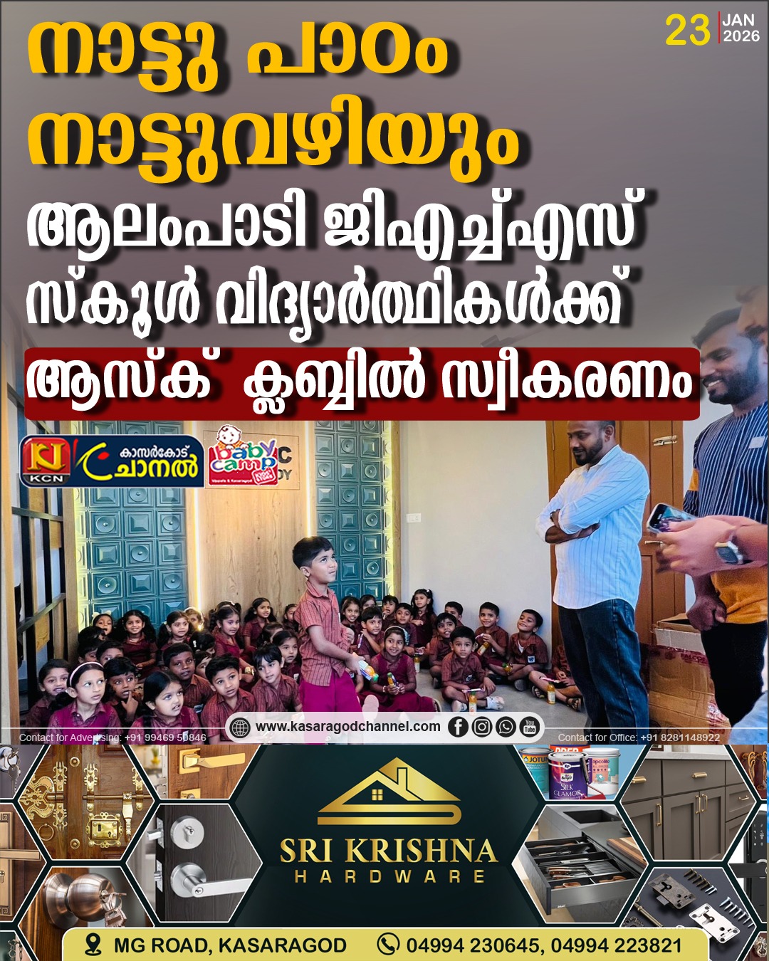 നാട്ടു പാഠം നാട്ടുവഴിയും: ആലംപാടി ജിഎച്ച്എസ് സ്കൂള് വിദ്യാര്ത്ഥികള്ക്ക് ആസ്ക് ക്ലബ്ബില് സ്വീകരണം