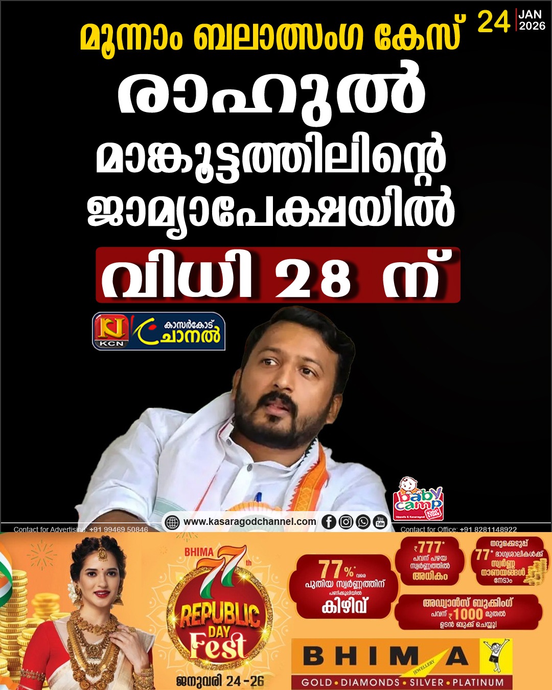 മൂന്നാം ബലാത്സംഗക്കേസില് രാഹുല് മാങ്കുട്ടത്തില് എംഎല്എയുടെ ജാമ്യാപേക്ഷയില് വിധി പറയുന്നത് മാറ്റി. പത്തനംതിട്ട ജില്ലാ സെഷന്സ് കോടതി ഈ മാസം 28ന് വിധി പറയും. കഴിഞ്ഞദിവസം പ്രാേസിക്യൂഷന്റെയും പ്രതിഭാഗത്തിന്റെയും വാദം പൂര്ത്തിയായിരുന്നു. അതിജീവിതയുടെ പരാതിയില് പറയുന്ന പല കാര്യങ്ങളും കള്ളമാണെന്ന വാദമാണ് പ്രതിഭാഗം ഉന്നയിച്ചത്. ബലാത്സംഗ കുറ്റം നിലനില്ക്കില്ലെന്നും രാഹുലിന്റെ അഭിഭാഷകര് കോടതിയെ അറിയിച്ചു.