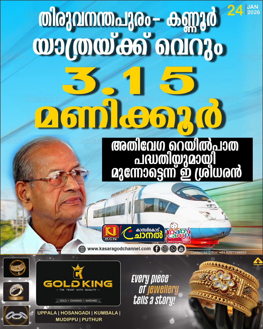 പതിനഞ്ച് ദിവസത്തിനകം പദ്ധതിയുടെ പ്രഖ്യാപനം ഉണ്ടാകുമെന്ന് ഇ ശ്രീധരന്