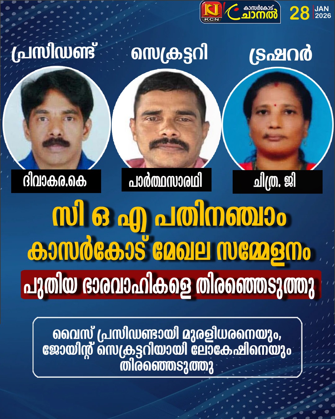വൈസ് പ്രസിഡണ്ടായി മുരളീധരനെയും, ജോയിന്റ് സെക്രട്ടറിയായി ലോകേഷിനെയും തിരഞ്ഞെടുത്തു