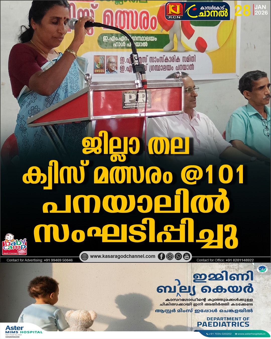 ജില്ലാ തല ക്വിസ് മത്സരം @101പനയാലില് സംഘടിപ്പിച്ചു.