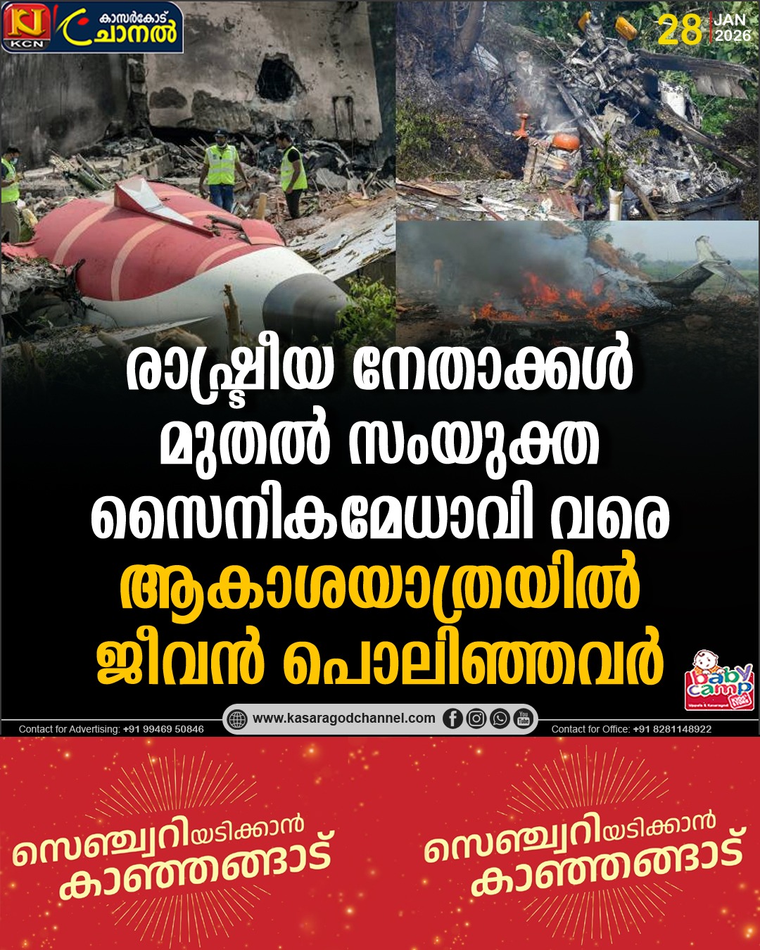 ആകാശദുരന്തത്തിലായിരുന്നു രാജ്യത്തിന്റെ സംയുക്ത സൈനിക മേധാവി ജനറല് ബിപിന് റാവത്ത് കൊല്ലപ്പെട്ടത്. തമിഴ്നാട്ടിലെ കൂനൂരിലായിരുന്നു ഹെലികോപ്റ്റര് അപകടം. ഇക്കഴിഞ്ഞ വര്ഷം രാജ്യത്തെ ഞെട്ടിച്ച വിമാനപകടത്തില് മരിച്ച 260 പേരില് ഗുജറാത്ത് മുന് മുഖ്യമന്ത്രി വിജയ് രൂപാണിയും ഉണ്ടായിരുന്നു. ഇപ്പോള് മഹാരാഷ്ട്ര ഉപമുഖ്യമന്ത്രി അജിത് പവാറിനും ആകാശദുരന്തത്തില് ജീവന് നഷ്ടമായി.