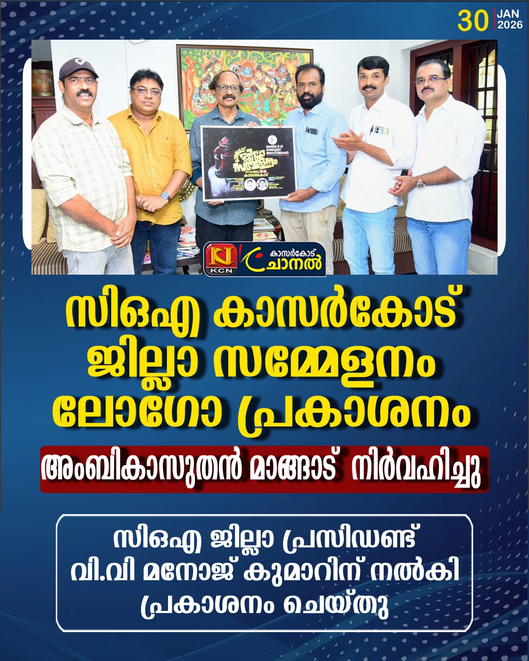 കാഞ്ഞങ്ങാട് : കേബിള് ടിവി ഓപ്പറേറ്റേഴ്സ് അസോസിയേഷന് (സിഒഎ) 15-ാമത് കാസര്ഗോഡ് ജില്ലാ സമ്മേളനം 2026 ഫെബ്രുവരി 15, 16 തീയ്യതികളില് കാസര്കോട് നടക്കും. ഇതിന്റെ പ്രചരണാര്ത്ഥം തയ്യാറാക്കിയ പോസ്റ്റര് സാഹിത്യകാരന് ഡോ:അംബികാസുതന് മാങ്ങാട് സിഒഎ ജില്ലാ പ്രസിഡണ്ട് വി.വി മനോജ് കുമാറിന് നല്കി പ്രകാശനം ചെയ്തു. അംബികാസുതന് മാങ്ങാടിന്റെ കാഞ്ഞങ്ങാട് സൗത്തിലെ വസതിയില് നടന്ന ചടങ്ങില് സിഒഎ സംസ്ഥാന സമിതി അംഗങ്ങളായ ഷുക്കൂര് കോളിക്കര, എം.ലോഹിതാക്ഷന്, സതീഷ് കെ പാക്കം, സിസിഎന് ചെയര്മാന് കെ.പ്രദീപ് കുമാര് എന്നിവര് സംബന്ധിച്ചു