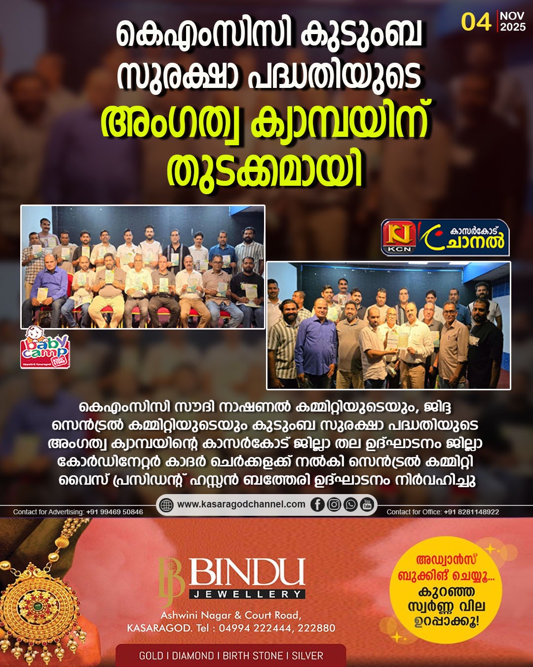 കാസര്കോട് ജില്ലാ തല ഉദ്ഘാടനം ജില്ലാ കോര്ഡിനേറ്റര് കാദര് ചെര്ക്കളക്ക് നല്കി സെന്ട്രല് കമ്മിറ്റി വൈസ് പ്രസിഡന്റ് ഹസ്സന് ബത്തേരി ഉദ്ഘാടനം നിര്വഹിച്ചു.