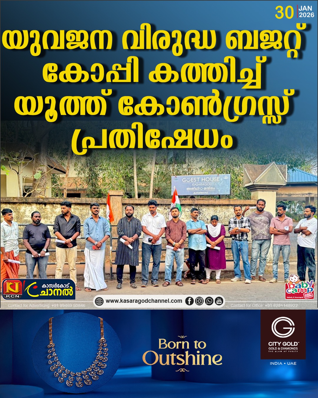 യൂത്ത് കോണ്ഗ്രസ് കാസറഗോഡ് നിയോജകമണ്ഡലം കമ്മിറ്റിയുടെ നേതൃത്വത്തില് ”പാഴായ പത്ത് വര്ഷം – പതിരായ ബജറ്റ്” എന്ന മുദ്രാവാക്യമുയര്ത്തി ബജറ്റ് 2026 കത്തിച്ച് ശക്തമായ പ്രതിഷേധം സംഘടിപ്പിച്ചു. കാസറഗോഡ് ഗസ്റ്റ് ഹൗസ് പരിസരത്ത് നടന്ന പ്രതിഷേധ പരിപാടി യൂത്ത് കോണ്ഗ്രസ് കാസറഗോഡ് നിയോജകമണ്ഡലം പ്രസിഡന്റ് ആബിദ് എടച്ചേരിയുടെ അധ്യക്ഷതയില് കെ പി സി സി ഡിജിറ്റല് മീഡിയ സെല് കാസറഗോഡ് ജില്ലാ കോഡിനേറ്റര് ഷാഹിദ് പുലികുന്ന് ഉദ്ഘാടനം ചെയ്തു.
