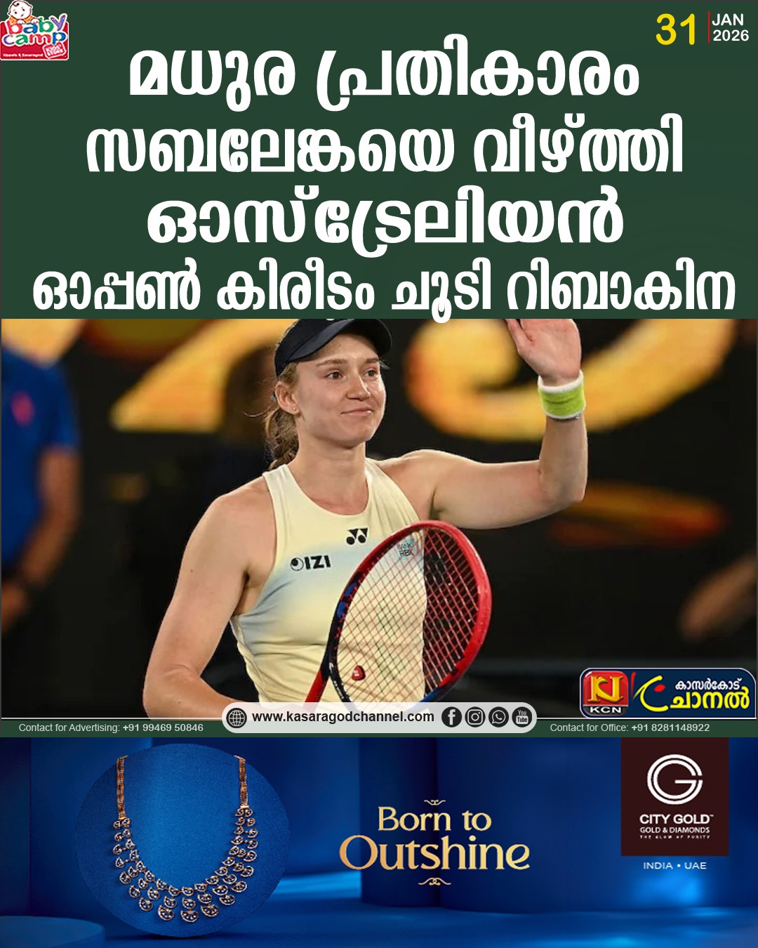 മധുര പ്രതികാരം; സബലേങ്കയെ വീഴ്ത്തി ഓസ്ട്രേലിയന് ഓപ്പണ് കിരീടം ചൂടി റിബാകിന