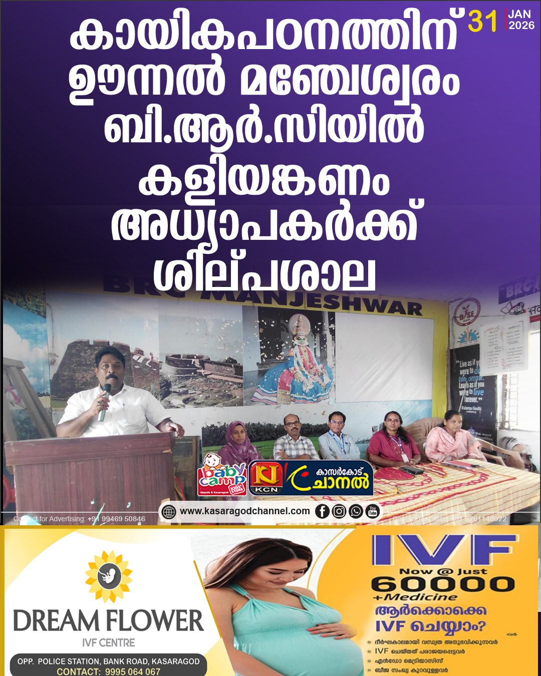 മഞ്ചേശ്വരം :സമഗ്ര ശിക്ഷാ കേരള 2025-26 സ്റ്റാര്സ് SIG കളിയങ്കണം (കിഡ്സ് അറ്റ്ലറ്റിക്സ്) പദ്ധതിയുടെ ഭാഗമായി അധ്യാപകര്ക്കായുള്ള ദ്വിദിന നോണ്-റെസിഡന്ഷ്യല് ശില്പശാല മഞ്ചേശ്വരം ബി ആര് സി യുടെ ആഭിമുഖ്യത്തില് ജനുവരി 30, 31 തീയതികളില് സംഘടിപ്പിച്ചു. കുട്ടികളുടെ കായികക്ഷമത വര്ധിപ്പിക്കുകയെന്ന ലക്ഷ്യത്തോടെ സംസ്ഥാനത്തെ അംഗീകൃത പ്രീ-പ്രൈമറി, പ്രൈമറി വിദ്യാലയങ്ങളില് സ്പോര്ട്സ് കേരള ഫൗണ്ടേഷനുമായി സഹകരിച്ച് വിതരണം ചെയ്ത സ്പോര്ട്സ് കിറ്റിലെ ഉപകരണങ്ങള് ഫലപ്രദമായി ഉപയോഗിക്കുന്നതിനുള്ള പരിശീലനമാണ് ശില്പശാലയിലൂടെ അധ്യാപകര്ക്ക് നല്കിയത്.