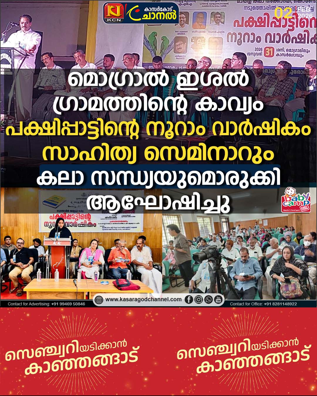കാസര്ഗോഡ്/ മൊഗ്രാല്.ഇശല് ഗ്രാമത്തിലെ കവി നടത്തോപ്പില് അബ്ദുള്ള രചിച്ച പക്ഷിപ്പാട്ട് രചനയുടെ നൂറാം വാര്ഷികം കാസര്ഗോഡും, മൊഗ്രാലിലുമായി സാഹിത്യ സെമിനാര് സംഘടിപ്പിച്ചും, കലാസന്ധ്യ ഒരുക്കിയും ആഘോഷിച്ചു. കൊണ്ടോട്ടി മഹാകവി മോയിന്കുട്ടി വൈദ്യര് മാപ്പിള കലാ അക്കാദമിയുടെ ആഭിമുഖ്യത്തില് ഇശല് ഗ്രാമം ട്രസ്റ്റ്-സ്കൂള് ഓഫ് മാപ്പിള ആര്ട്സ് മൊഗ്രാല്,പുരോഗമന കലാ സാഹിത്യ സംഘം കാസര്ഗോഡ് എന്നിവയുടെ സഹകരണത്തോടെയാണ് പക്ഷിപ്പാട്ട് രചനയുടെ നൂറാം വാര്ഷികാഘോഷം കൊണ്ടാടിയത്.