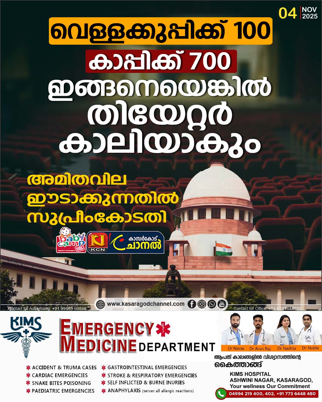 കാണികളില് നിന്ന് ഈടാക്കുന്ന ഈ നിരക്കില് പരിധി നിശ്ചയിച്ചില്ലെങ്കില് സിനിമാ തിയറ്ററുകള് കാലിയാകുന്ന അവസ്ഥ ഉണ്ടാകുമെന്ന് സുപ്രീംകോടതി