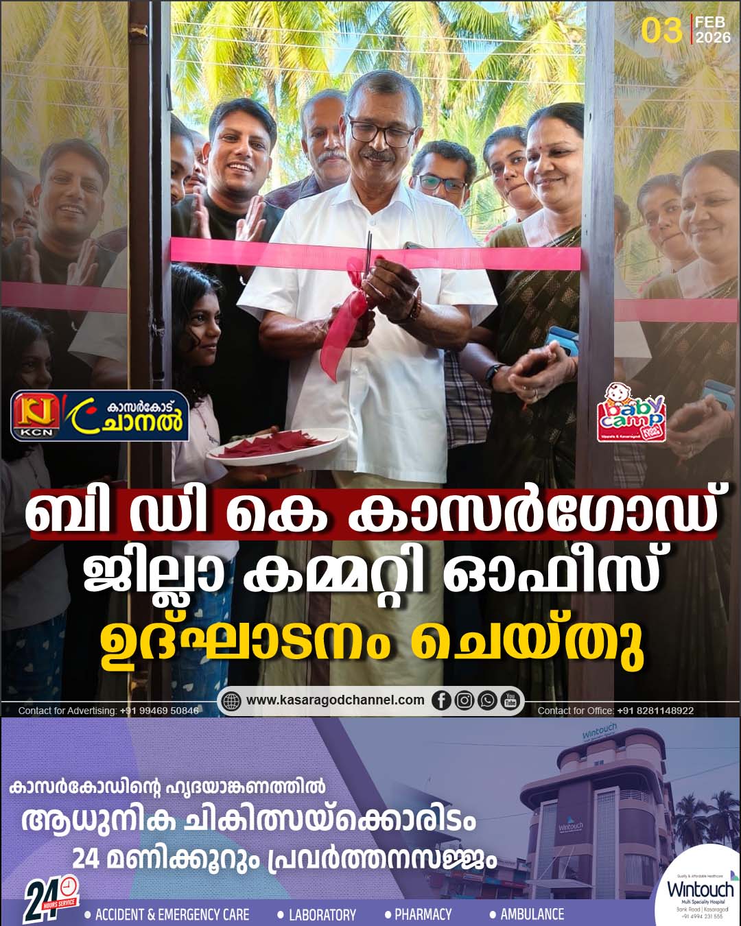 കാസര്ഗോഡ് : സന്നദ്ധ രക്തദാനരംഗത്തും ജീവകാരുണ്യ പ്രവര്ത്തന രംഗത്തും സജീവമായ ബ്ലഡ് ഡൊണേര്സ് കേരള (ബിഡികെ) പുതിയ ജില്ലാ കമ്മിറ്റി ഓഫീസ് ചെറുവത്തൂരില് ഉദ്ഘാടനം ചെയ്തു. വില്ലേജ് ഓഫീസിനടുത്ത് കണ്ണങ്കൈ ബില്ഡിംഗില് ( നിയര് കെകെ മെഡിക്കല്സ്) ഞായറാഴ്ച വൈകുന്നേരം 3 മണിക്ക് ചെറുവത്തൂര് ഗ്രാമ പഞ്ചായത്ത് പ്രസിഡന്റ് ശ്രീ. ടി നാരായണന് ഓഫീസ് ഉദ്ഘാടനം ചെയ്തു.
