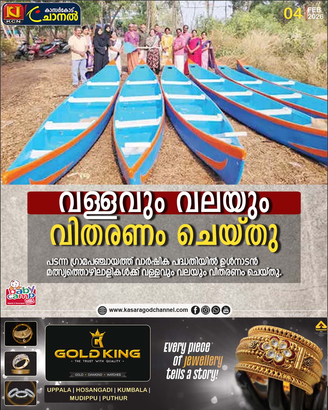 പടന്ന : പടന്ന ഗ്രാമപഞ്ചായത്ത് വാര്ഷിക പദ്ധതിയില് ഉള്നാടന് മത്സ്യത്തൊഴിലാളികള്ക്ക് വള്ളവും വലയും വിതരണം ചെയ്തു.