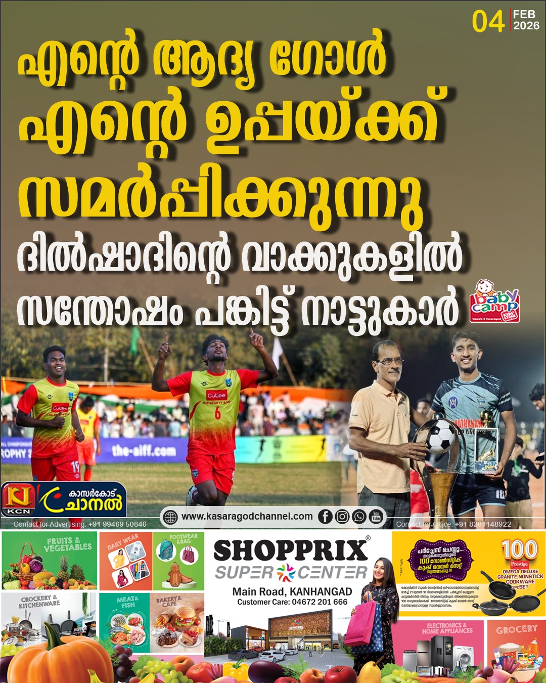 സന്തോഷ് ട്രോഫിയില് ക്വാട്ടര് മത്സരത്തില് ആതിഥേയരായ ആസാമിനെ 3-0ന് തകര്ത്ത് കഴിഞ്ഞ ദിവസം കേരളം സെമിയില് കുതിച്ചപ്പോള് മൊഗ്രാല് ഫുട്ബോള് ഗ്രാമത്തിന് അഭിമാനിക്കാന് ഏറെ.കളികഴിഞ്ഞ് അഭിനന്ദിക്കാന് നാട്ടുകാര് തുരുതുരാ വിളിച്ചപ്പോഴൊക്കെ തന്റെ ഈ ‘ഗോള്” തന്റെ ഉപ്പ എംഎല് അബ്ബാസിന് സമര്പ്പിക്കുന്നുവെ ന്നാണ് പറഞ്ഞ് ആഹ്ലാദം പങ്കിട്ടത്.തന്റെ ഫുട്ബോള് കരിയറില് ഉയര്ച്ചയ്ക്ക് പിന്നില് ഉപ്പയുടെ വലിയതോതിലുള്ള പ്രോത്സാഹനവും, സഹായവും ഉണ്ടായിട്ടുണ്ടെന്ന് ദില്ഷാദ് പറയുന്നു. മൊഗ്രാല് സ്പോര്ട്സ് ക്ലബ്ബിന്റെ ടീം മാനേജറും,മുന് ജില്ലാ ഫുട്ബോള് ടീം മാനേജറുമാണ് എം എല് അബ്ബാസ്.