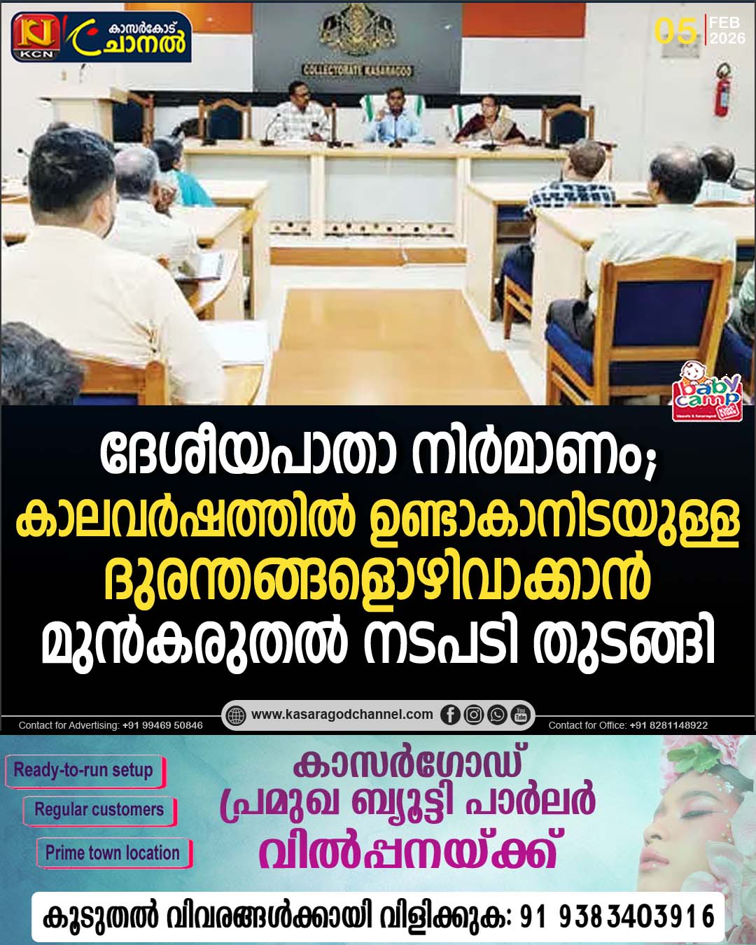 ജില്ലാ വികസനസമിതി യോഗ തീരുമാനപ്രകാരം ദേശീയപാതാ നിര്മാണമേഖലയിലെ പരാതികള് അറിയിക്കാന് സാങ്കേതിക സമിതിയെ നിയോഗിച്ചിട്ടുണ്ട്. ദേശീയപാതയിലുണ്ടാകുന്ന വെള്ളക്കെട്ട്, മണ്ണിടിച്ചില് പ്രശ്നങ്ങള് തുടങ്ങിയവയില് പൊതുജനങ്ങള്ക്ക് പരാതികളും നിര്ദേശങ്ങളും nhcomplaintsksd@gmail.com എന്ന ഇ-മെയിലില് അയക്കാം.