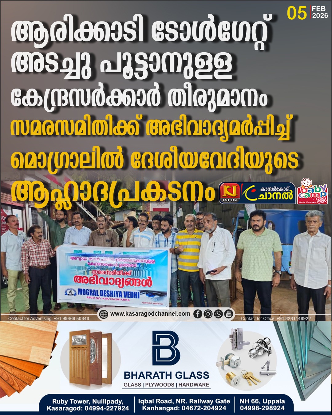 മൊഗ്രാല്.ജനകീയ സമരത്തിന് മുന്നില് മുട്ടുമടക്കി അരിക്കാടി ടോള്ഗേറ്റ് അടച്ചുപൂട്ടാനുള്ള കേന്ദ്രസര്ക്കാര് തീരുമാനത്തെ സ്വാഗതം ചെയ്തും, സമരസമിതിക്ക് അഭിവാദ്യമര്പ്പിച്ചും മൊഗ്രാലില് ദേശീയവേദി പ്രവര്ത്തകര് ആഹ്ലാദപ്രകടനം നടത്തി.