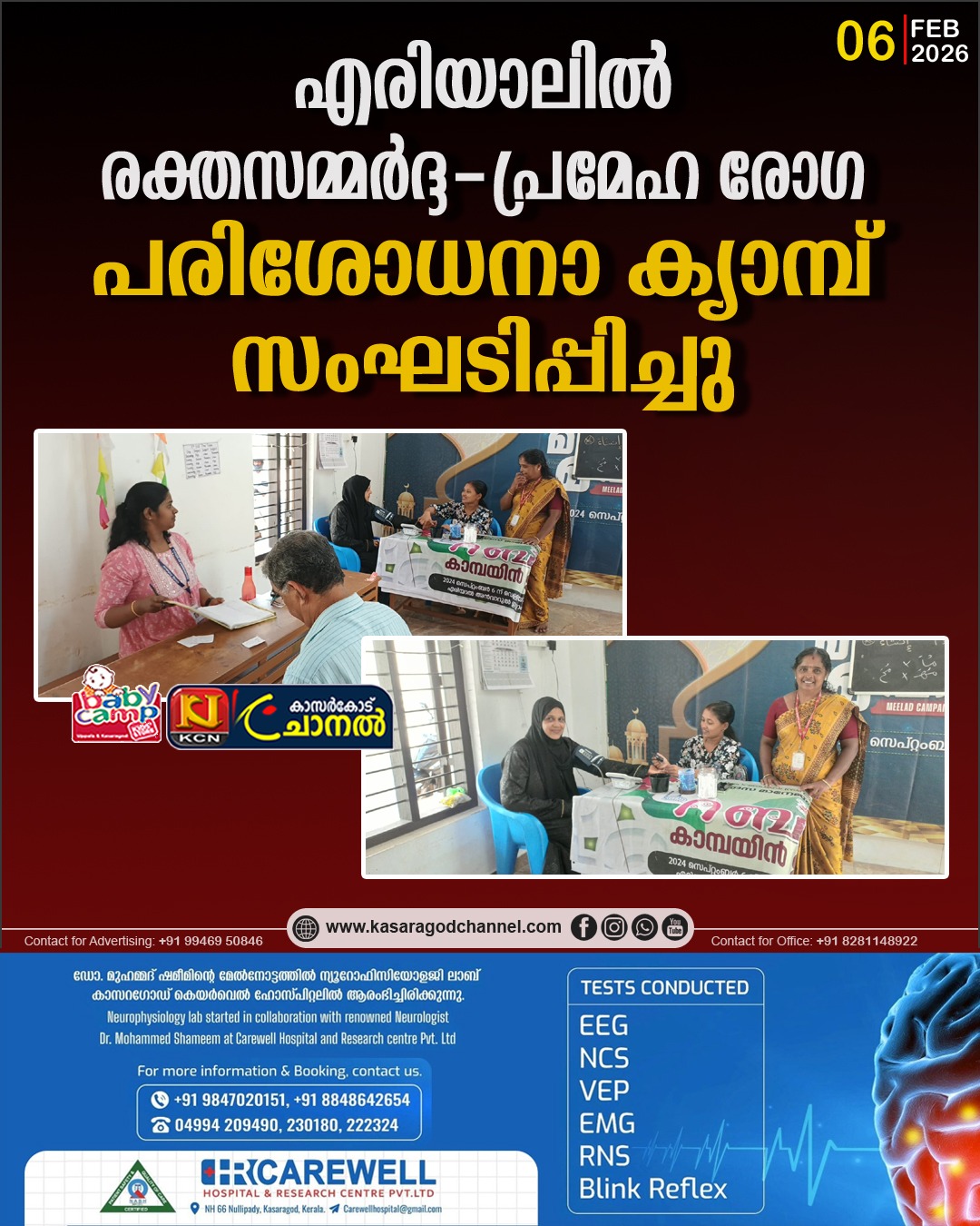 ഫോട്ടോ:എരിയാലില് സംഘടിപ്പിച്ച രക്തസമ്മര്ദ്ദ- പ്രമേയ രോഗ പരിശോധനാ ക്യാമ്പ്.