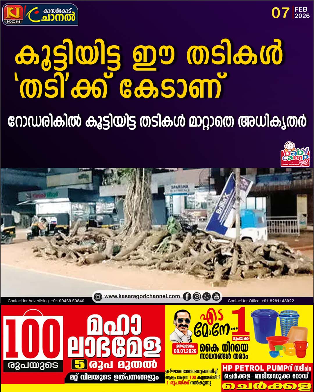 കാല്നടയാത്രക്കാര്ക്കും അരികിലെ ഓട്ടോസ്റ്റാന്ഡിലെ ഡ്രൈവര്മാര്ക്കും ചുറ്റിലുമുള്ള കടകളിലുള്ളവര്ക്കും ഇത് ഭീഷണിയായി മാറിയിട്ട് മാസങ്ങള് കഴിഞ്ഞു. മുള്ളേരിയ-കുമ്പള കെഎസ്ടിപി റോഡിന്റെ സമീപമായി ഇവിടെ ഉണ്ടായിരുന്ന തണല്മരം ഉണങ്ങിവീഴാറായപ്പോള് അതിന്റെ്റെ ശിഖരങ്ങള് വെട്ടി തായ്ത്തടിക്കു ചുറ്റുമായി കൂട്ടിയിടുകയാണ് ചെയ്തത്. റോഡ് നിര്മാണം നടത്തുന്ന കമ്പനിയാണ് ഇത് ചെയ്തത്. എന്നാല്, ഇത് നീക്കംചെയ്ത് സുരക്ഷിതയാത്രയൊരുക്കാനുള്ള ഒരു നടപടിയും അവര് ചെയ്തിട്ടില്ല. ഇവിടെ റോഡിനിരുപുറവുമായി ആയിരക്കണക്കിന് വിദ്യാര്ഥികള് പഠിക്കുന്ന ഗവ. ഹൈസ്കൂള് പെര്ഡാലയും നവജീവന ഹയര് സെക്കന്ഡറി സ്കൂള് പെര്ഡാലയും ഉണ്ട്. സ്കൂള്സമയങ്ങളില് വലിയ തിരക്കനുഭവപ്പെടുന്ന സ്ഥലമാണ് ഇത്. റോഡരികിലൂടെ നടക്കുന്നവര്ക്ക് ഇവിടെ എത്തിയാല് റോഡിലേക്ക് കയറാതെ നടക്കാന് സ്ഥലമില്ല. ഇത് അപകടസാധ്യത വര്ധിപ്പിക്കുന്നു. കൂടാതെ, സുരക്ഷിതമായി റോഡ് മുറിച്ചുകടക്കാനുള്ള സീബ്രാലൈന് ഇവിടെയാണുള്ളത്. സീബ്രാലൈനിലൂടെ വരുന്നവര്ക്ക് ഇരുവശങ്ങളിലേക്കും പോകാനും ഈ വിറകിന് കൂട്ടങ്ങള് തടസ്സമാണ്. റവന്യൂ അധികൃതര് നടപടിയെടുക്കണം. വിദ്യാര്ഥികള് ഉള്പ്പെടെയുള്ള കാല്നടയാത്രക്കാര്ക്ക് ഏറെ ഭീഷണി ഉയര്ത്തുന്ന ഈ വിറകുതടികള് നീക്കംചെയ്യാന് ബന്ധപ്പെട്ടവര് തയ്യാറാവാത്തത് ജനങ്ങളില് വലിയ പ്രതിഷേധം