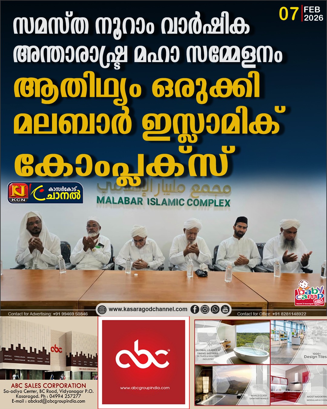 ചട്ടന്ചാല്: കാസറഗോഡ് കുണിയയില് വെച്ച് നടക്കുന്ന സമസ്ത കേരള ജംഇയ്യത്തുല് ഉലമയുടെ നൂറാം വാര്ഷിക അന്താരാഷ്ട്ര മഹാ സമ്മേളനത്തില് പങ്കെടുക്കുന്ന രാജ്യാന്തര-ദേശീയ പ്രതിനിധികള് ഉള്പ്പെടെ അഞ്ഞൂറോളം അതിഥികള്ക്ക് ജില്ലയിലെ സമസ്തയുടെ അഭിമാന സ്ഥാപനമായ മലബാര് ഇസ്ലാമിക് കോംപ്ലക്സ് (എം.ഐ.സി) വിശാലമായ ആതിഥ്യം ഒരുക്കിയിരിക്കുകയാണ്.