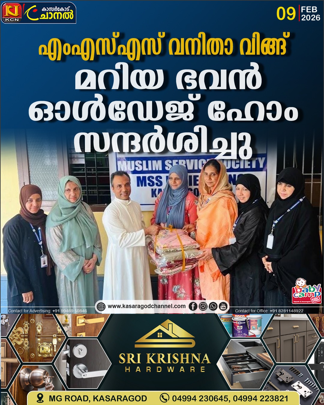 കാസര്ഗോഡ് എം എസ് എസ് (മുസ്ലിം സര്വീസ് സൊസൈറ്റി) വനിതാ വിങ് കാസര്ഗോഡ് യൂണിറ്റിന്റെ ആഭിമുഖ്യത്തില് മറിയാ ഭവന് അന്തേവാസികള്ക്ക് ആവശ്യ സാധനങ്ങളായ തലയിണകള്, ബെഡ്ഷീറ്റുകള്, മെത്തക്ക് വേണ്ടി റെക്സിന് കവറുകള് എന്നിവ സമ്മാനിച്ചു ഒപ്പം ഭക്ഷണ സാധനങ്ങളും നല്കുകയുണ്ടായി. കാസര്ഗോഡ് യൂണിറ്റ് പ്രസിഡണ്ട് സാബിറ എവറസ്റ്റ് , വൃദ്ധ സദനം നടത്തിപ്പുകാരന് ഫാദര് നിക്സണ് നല്കിക്കൊണ്ട് ഉദ്ഘാടനം ചെയ്തു. കാസര്കോട് പെരിയക്കടുത്ത് ചെറുക്കാ പാറയില് ആണ് മരിയ ഭവന് എന്ന ഈ വൃദ്ധ സദനം സ്ഥിതിചെയ്യുന്നത്. കാസര്ഗോഡ് എംഎസ്എസ് വനിതാ വിങ്ങ് പ്രവര്ത്തകരാണ് ഈ പരിപാടി സംഘടിപ്പിച്ചത്. യൂണിറ്റ് പ്രസിഡണ്ട് സാബിറ എവറസ്റ്റ് അധ്യക്ഷത വഹിച്ചു. ഷംഷാദ് എസ്സ്.എസ്സ്,