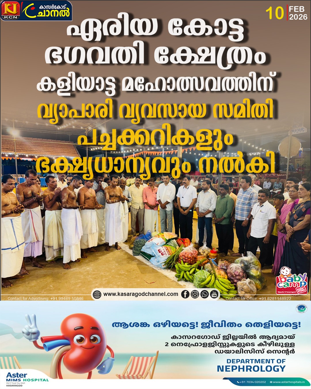 മൊഗ്രാല്പുത്തൂര് : കാവു ഗോളി ചൗക്കി ഏരിയ കോട്ട ഭഗവതി ക്ഷേത്രത്തിലെ കളിയാട്ട മഹോത്സവത്തോടനുബന്ധിച്ച്, കേരള സംസ്ഥാന വ്യാപാരി വ്യവസായ സമിതി മൊഗ്രാല്പുത്തൂര് യൂണിറ്റ് പച്ചക്കറികളും ഭക്ഷ്യധാന്യങ്ങളും നല്കി
