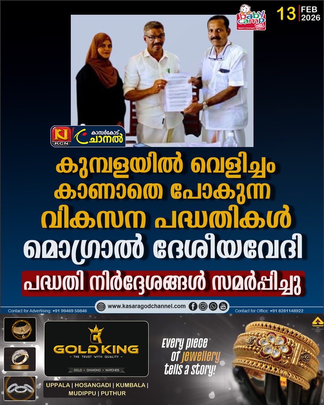 പൂര്ത്തിയായി കിടക്കുന്ന കുമ്പള മത്സ്യ മാര്ക്കറ്റും,ബദിയടുക്ക റോഡിലുള്ള ശൗചാലയമടക്കമുള്ള വഴിയോര വിശ്രമ കേന്ദ്രവും അടിയന്തിരമായി തുറന്നു കൊടുക്കാനുള്ള നടപടികള് സ്വീകരിക്കുക.