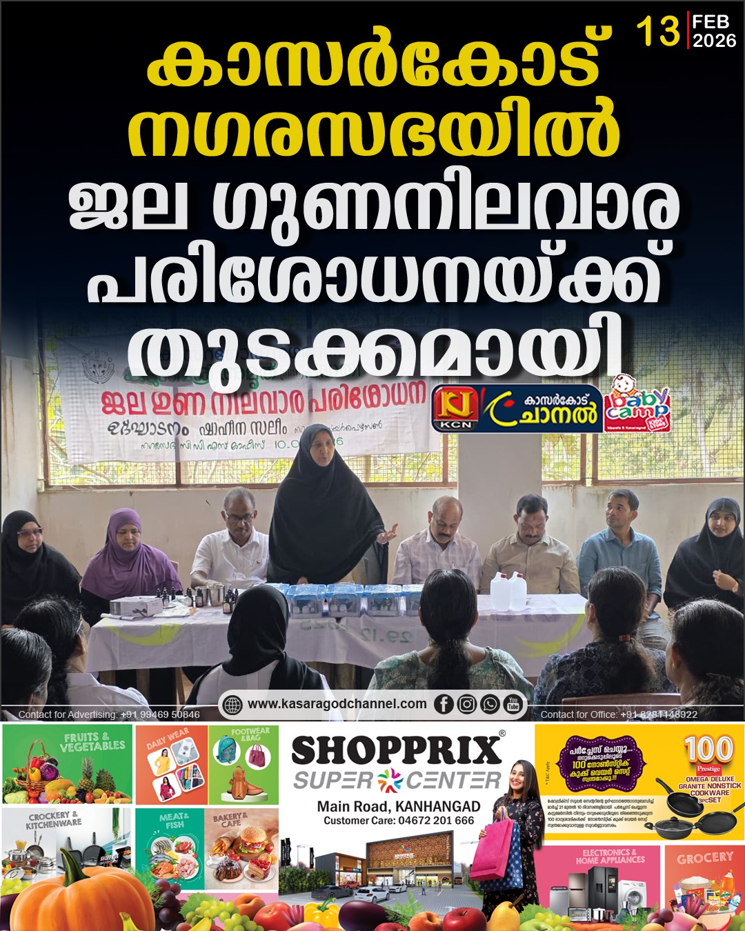പദ്ധതിയുടെ ഭാഗമായി നഗരസഭയിലെ 9000 ജലസ്രോതസ്സുകളില് നാല് കുടുംബശ്രീ അംഗങ്ങളുടെ നേതൃത്വത്തില് 10 പരാമീറ്ററുകളുടെ പരിശോധന നടത്തി റിസല്ട്ട് ഗുണഭോക്താക്കള്ക്ക് നല്കും
