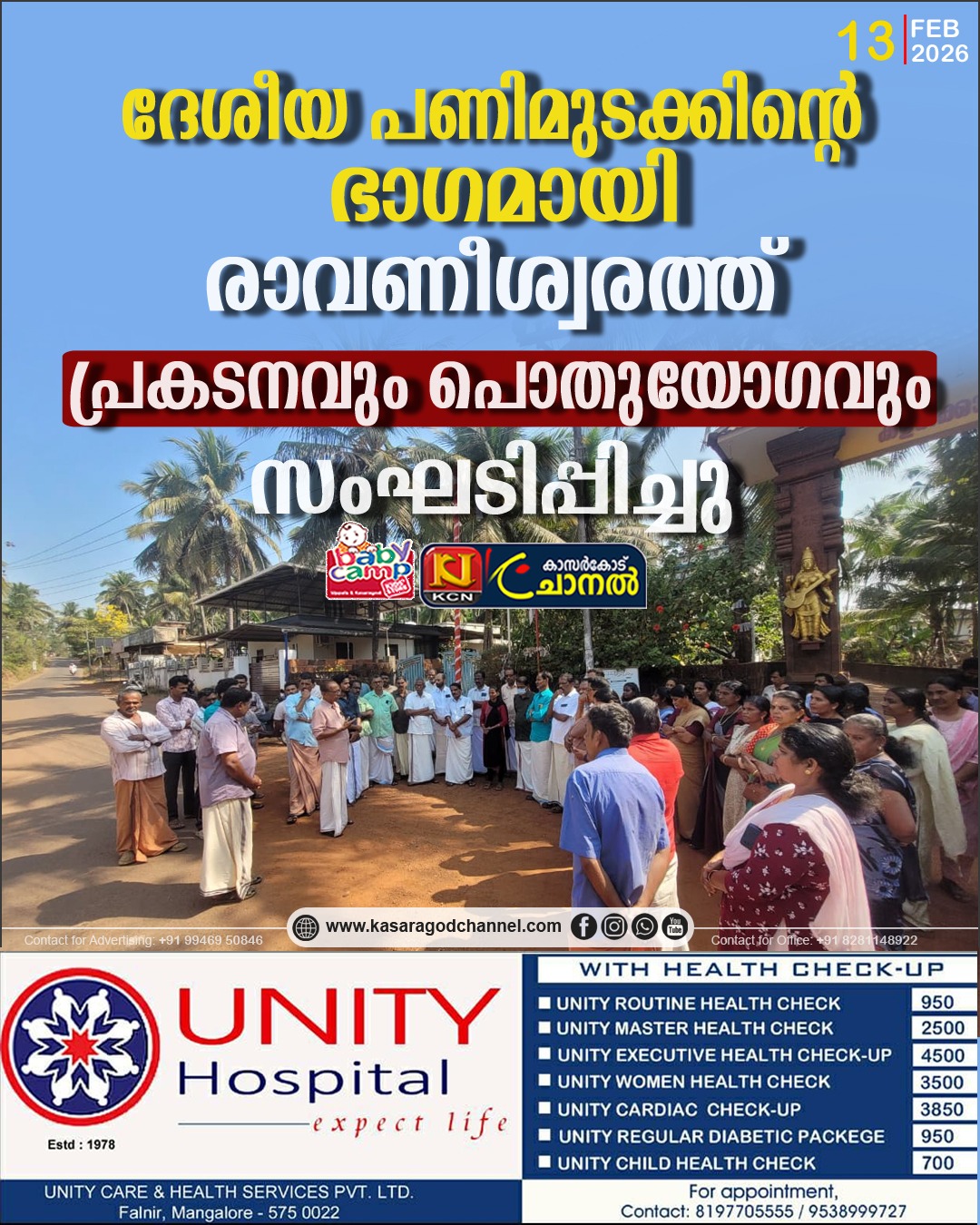 ദേശീയ പണിമുടക്കിന്റെ ഭാഗമായി രാവണീശ്വരത്ത് പ്രകടനവും പൊതുയോഗവും സംഘടിപ്പിച്ചു