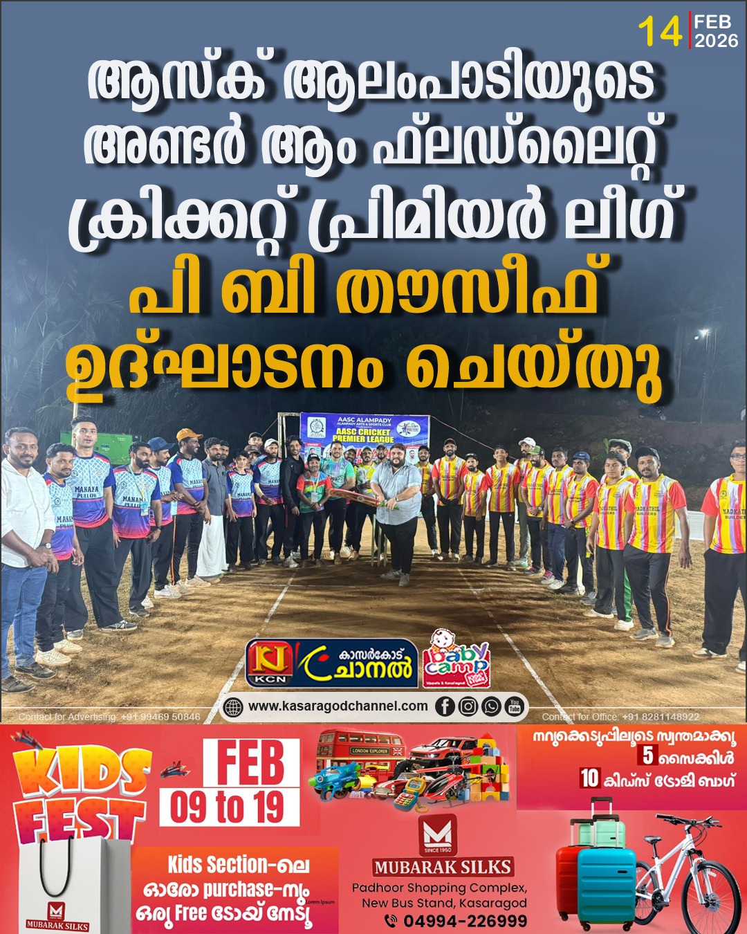 ആസ്ക് ആലംപാടിയുടെ അണ്ടര് ആം ഫ്ലഡ്ലൈറ്റ് ക്രിക്കറ്റ് പ്രിമിയര് ലീഗ് പി ബി തൗസീഫ് ഉദ്ഘാടനം ചെയ്തു