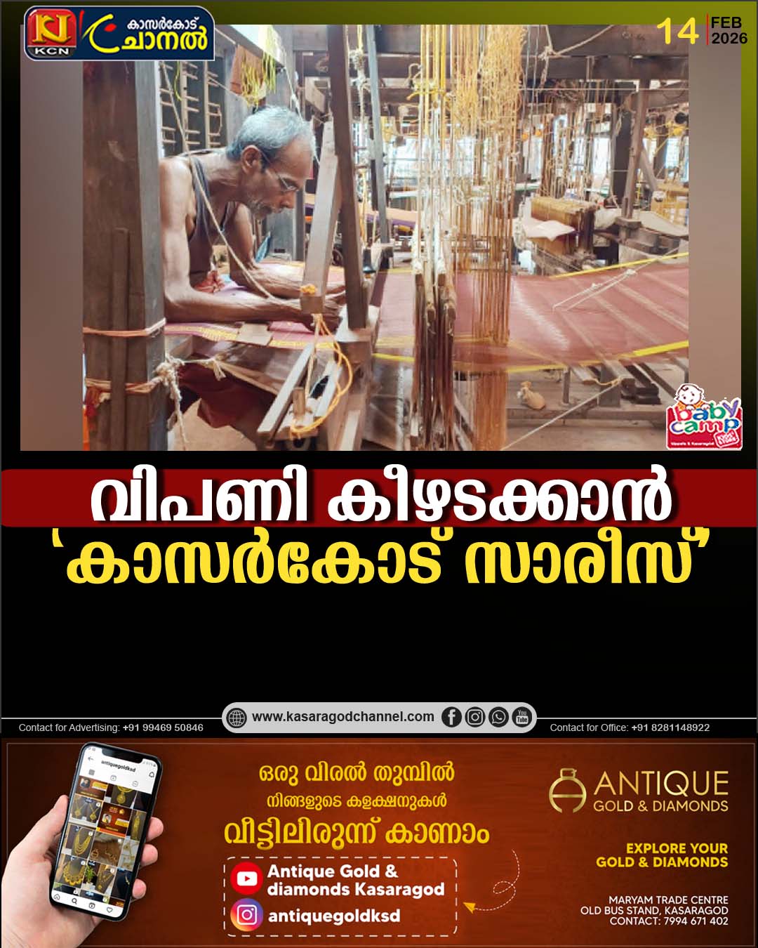 കാസര്കോട്: ഭൗമസൂചിക പദവിയുടെ തിളക്കത്തില് കാസര്കോട് സാരീസിന് വീണ്ടും വിപണി തിളക്കം. കാസര്കോട് വീവേഴ്സ് കോഓപറേറ്റിവ് പ്രൊഡക്ഷന് ആന്ഡ് സെയില്സ് ലിമിറ്റഡ് കാസര്കോട് സാരീസിന്റെ ഉല്പാദകര്. കോട്ടണ് നൂലുകള് ഉപയോഗിച്ച് കൈകൊണ്ട് നെയ്തെടുക്കുന്ന സാരികളാണ് സംഘത്തിന്റെ പ്രധാന ഉല്പന്നം.