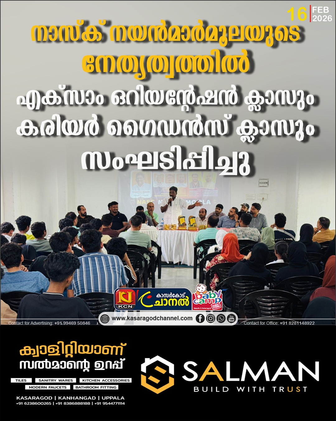 നായന്മാര്മൂല :നാസ്ക് നയന്മാര്മൂലയുടെ നേതൃത്വത്തില് പ്രദേശത്തെ 9, 10, +1, +2 ക്ലാസുകളില് പഠിക്കുന്ന വിദ്യാര്ത്ഥികള്ക്കായി എക്സാം ഒറിയന്റേഷന് ക്ലാസും കരിയര് ഗൈഡന്സ് ക്ലാസും സംഘടിപ്പിച്ചു. പരീക്ഷയെ ആത്മവിശ്വാസത്തോടെ നേരിടുന്നതും പരീക്ഷയ്ക്ക് ശേഷം കരിയര് തിരഞ്ഞെടുപ്പുകള് നിര്ണയിക്കുന്നതുമായി ബന്ധപ്പെട്ട് വിദ്യാര്ത്ഥികള്ക്ക് വിശദമായ മാര്ഗനിര്ദേശങ്ങള് നല്കി.