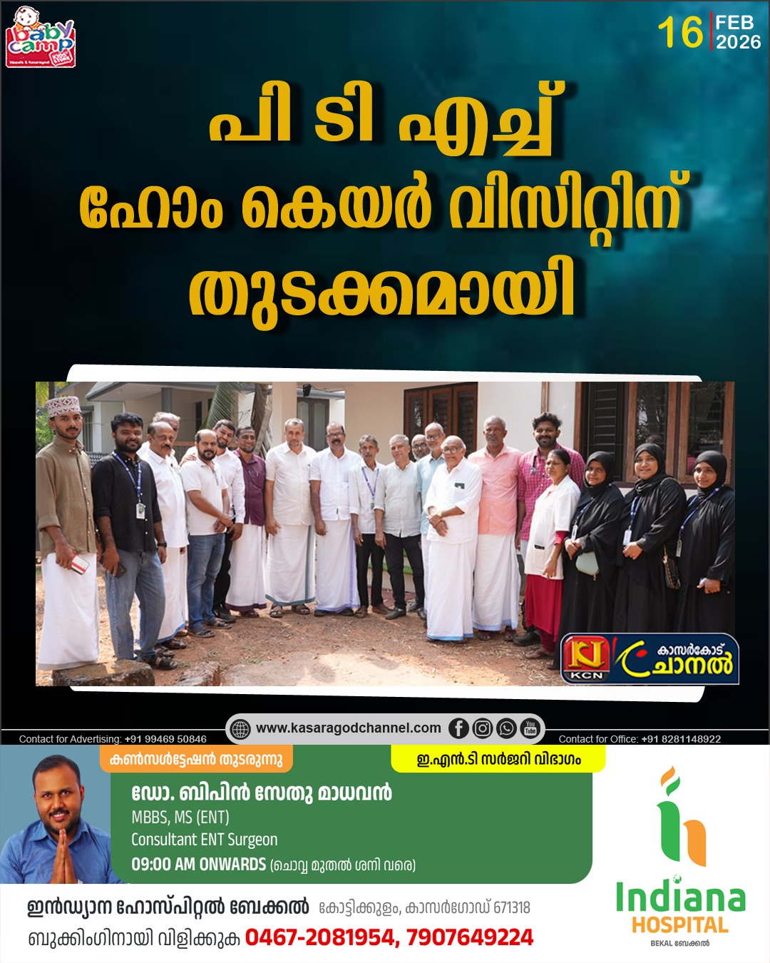 കാസറഗോഡ് : കാസറഗോഡ് മണ്ഡലം പൂക്കോയ തങ്ങള് ഹോസ്പിസ് പാലിയേറ്റിവ് കെയര് ആഭിമുഖ്യത്തില് ഹോം കെയര് വിസിറ്റിന് തുടക്കമായി , മുസ്ലിം ലീഗ് ജില്ലാ ട്രെഷററും പി ടി എച്ച് ചെയര്മാനുമായ പി എം മുനീര് ഹാജി, മുസ്ലിം ലീഗ് ജില്ലാ വൈസ് പ്രസിഡന്റ് എ എം കടവത്ത്, മുസ്ലിം ലീഗ് മണ്ഡലം പ്രസിഡന്റ് മാഹിന് കേളോട്ട്, ട്രെഷറര് കെ ബി കുഞ്ഞാമു ഹാജി, മണ്ഡലം വൈസ് പ്രസിഡന്റ് ഹാഷിം കടവത്ത്, കാസറഗോഡ് നഗര സഭ ചെയര്പേഴ്സണ് ഷാഹിന സലീം, മുസ്ലിം ലീഗ് കാസറഗോഡ് മുനിസിപ്പല് കമ്മിറ്റി പ്രസിഡന്റ് കെ എം ബഷീര്, ജനറല് സെക്രട്ടറി ഹമീദ് ബെദിര , പി ടി എച്ച് ജില്ലാ കോര്ഡിനേറ്റര് ജലീല് കോയ, മണ്ഡലം പി ടി എച്ച് ജനറല് കണ്വീനര് മൊയ്തീന് കൊല്ലംമ്പാടി,