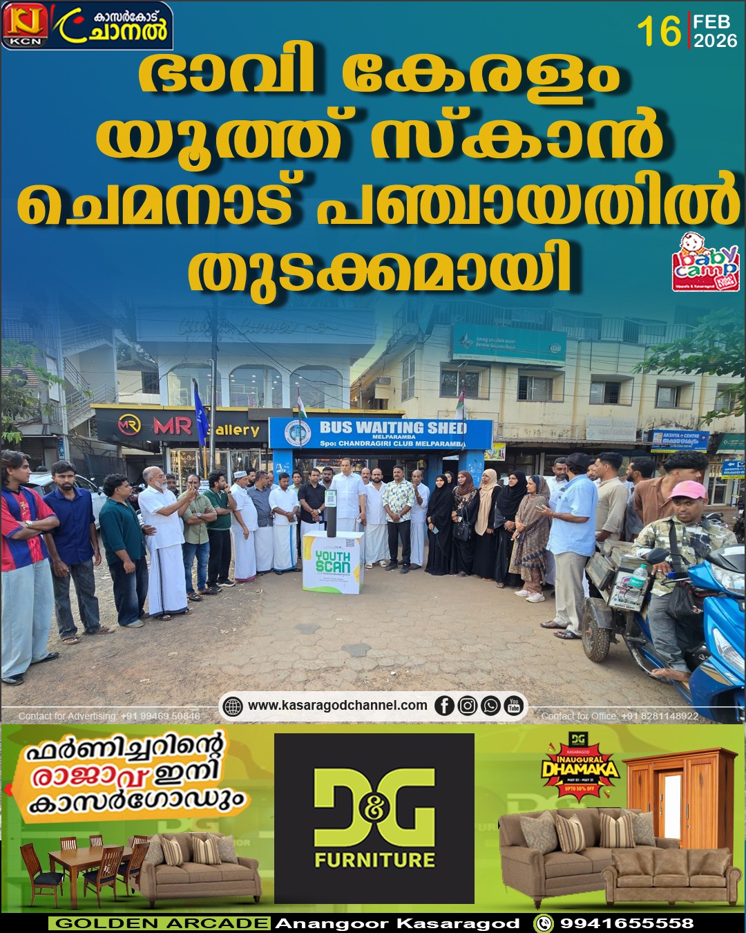 കേരളം ഭരണം സംബന്ധിച്ച്, പുതിയ കേരളത്തെ കുറിച്ചുള്ള യുവജനങ്ങളുടെ കാഴ്ച്ചപ്പാടുകള് അവതരിപ്പിക്കാനുള്ള യൂത്ത് ലീഗ് യൂത്ത് സ്കാന് സര്വേയ്ക്ക് ചെമനാട് പഞ്ചായതില് തുടക്കമായി,